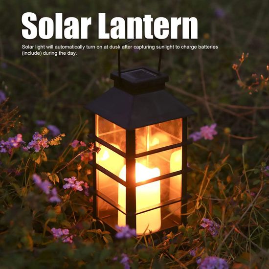 Ajoutez une lueur enchanteresse à vos espaces extérieurs avec le lot de 4 lanternes solaires à suspendre en forme de pyramide noire. Effet vacillant : ces lanternes solaires suspendues imitent le scintillement naturel, projetant une douce lueur ambrée, créant une atmosphère confortable et confortable. Imperméable et résistant à la rouille : cette lampe solaire suspendue d'extérieur IP65 la maintient brillante par différents temps, idéale pour l'ambiance extérieure sur les arbres, les pergolas ou les patios. Lanterne Solaire Exterieur A Suspendre Lot De 4 Lanternes Solaires Plus de soucis de batterie. Lot De 4 Lanternes Solaires D'extérieur étanches à Suspendre Avec Bougeoir, Petit Lustre Solaire Pour Arbres, Terrasse, Jardin, Porche, Balcon Les lumières LED ambrées à énergie solaire imitent le scintillement naturel des bougies chauffe-plat, créant une ambiance chaleureuse et confortable qui est parfaite pour le jardin, la terrasse, la tonnelle ou la pergola. Efficace à l'énergie solaire : ces bougies solaires d'extérieur étanches se chargent automatiquement à la lumière du jour et offrent jusqu'à 8 à 10 heures de lumière douce la nuit. La chaîne réglable de 35,6 cm avec crochets permet un placement polyvalent, ce qui fait de ces lampes solaires suspendues un ajout élégant et pratique à votre décoration extérieure. Charme rustique : lot de 4 lanternes solaires à suspendre pour l'extérieur, avec support rustique en fer noir de 8,1 cm de diamètre et chaîne réglable de 35...