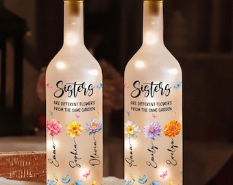 Toile Bouteille lumineuse / veilleuse personnalisée La bouteille lumineuse personnalisée est un cadeau pour remonter le moral à une amie qui l’accompagne dans les moments plus gris. Tu peux y glisser une photo pleine de bons souvenirs ou un message réconfortant : une pensée douce qui brille à travers le verre Veilleuse bouteille cadeau pour sœur, sœur Gourde personnalisé | belle soeur parfaite | cadeau d'anniversaire | bouteille eau personnalisée En cristal sans plomb avec une base épaisse, il est aussi élégant que solide. Livré dans son coffret cadeau luxe, prêt à offrir pour un anniversaire, Noël, ou... Lampe Personnalisable Lampe - Veilleuse - Lampe De Table Chambre - Best Soeur De Tous Les Temps Cadeau Pour Ma Soeur Bouteille de vin avec lumières, cadeau de vin pour belle-soeur, décoration de chambre de soeur, cadeau d'anniversaire de soeur de soeur, déco bar à vin, soeurs sont différentes - France