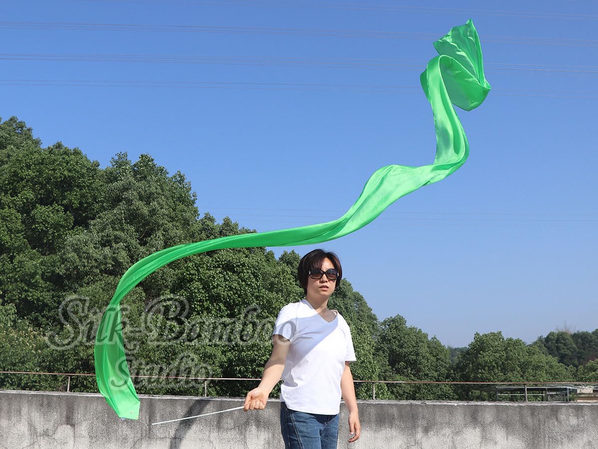 Soie légère de 5 mm : Fabriqué en soie naturelle authentique pour un flottement fluide et gracieux, avec des dégradés de couleur vibrants peints à la main (dimensions : 250 cm x 90 cm). Winged Sirenny Baguette à Ruban De Danse En Soie Naturelle 4m, Fluide Et Aux Couleurs Vives, Avec Poignée Pivotante, Pour Gymnastique Rythmique, Flow Art Et Spectacles (Vert Ce produit n'est pas un jouet et convient aux adolescents et adultes. Les enfants vont adorer ce ruban de danse en soie véritable ! Avec son bâton en fibre de verre (48cm) et son tissu fluide de 180x30cm... Entretien : Nous recommandons un repassage à la vapeur pour une fluidité parfaite. Description du produit Le ruban de danse Winged Sirenny, en soie naturelle légère (5 mm), offre une fluidité exceptionnelle pour magnifier chaque mouvement. Conçu pour les danseurs professionnels, gymnastes ou amateurs d'arts visuels, ce ruban sublime les chorégraphies contemporaines, les performances de gymnastique rythmique, les défilés festifs ou les mariages. Ses dégradés de couleur peints à la main créent un effet visuel captivant lors des spectacles. Pochette de rangement élégante : Chaque ruban inclut une pochette en forme de fleur assortie, protégeant le produit et ajoutant une touche esthétique pratique. Conseils d'entretien : Repassez à la vapeur pour éliminer les plis (évitez l'eau). Évitez de frapper un mur ou des personnes. C'est également un jouet amusant en soie pour les enfants pour le jeu imaginatif et l'art du flux de soie. Le tissu mesure 248,9 cm de long, 30,5 cm de large (2,5 m x 0,3 m) en soie véritable légère. La tige est en fibre de verre blanche de 48 cm avec 2 jonctions rotatives Achetez-en 2 pour obtenir 1 paire. Rangez à sec dans la pochette après usage pour préserver la qualité. Money Back Guarantee ensures that buyers receive the item they ordered or get their money back. Idéal pour les spectacles de danse contemporaine, les festivals culturels, les défilés, la gymnastique rythmique ou les photos artistiques. La soie est rangée dans une pochette à l’extrémité de la tige. Mentionnez votre préférence lors de la commande ! Ruban de soie vibrantes pour la danse et le jeu