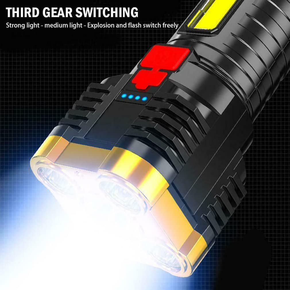 Caractéristiques: Matériau : ABS. Chargement USB et témoin lumineux : chargement par ports USB, charge rapide. 【Super lumineux】Mèche haute intensité avec plus de lumière, lumière LED OSL+COB, la distance d'irradiation est de plus de 500 m. récemment lancé plus puissants torches tactiques led à led - Morocco Lampe torche rechargeable USB avec batterie longue durée : cette lampe torche LED rechargeable est livrée avec une batterie de haute qualité, offre une luminosité puissante et maintient la luminosité. Interface de charge micro USB intégrée, qui peut être chargée via une banque d'alimentation, une prise, un ordinateur portable, ou un PC. Pratique pour le chargement intérieur et... Lampe Torche LED Ultra Puissante,90000 Lumens Lampe De Poche Rechargeable USB Type-C, XHP70 Ajustable Zoomable Étanche Torche - Bricolage Puissance: charge USB Forme de source lumineuse : LED Batterie : 1 x 18650 (batterie intégrée) Perles de lampe : perles de lampe à faible lumière Puissance : 5 W., Tension : 3,1 V. Parfait pour le camping, la randonnée, la pêche, la voile, l'équitation, les activités de plein air, etc. Affichage de l'alimentation en temps réel (25 %/50 %/75 %/100 %) pour garder une trace de la puissance de la batterie, batterie au lithium intégrée de grande capacité avec fonction indicateur de charge. 【4 modèles d'éclairage】 Lumière haute/faible/stroboscopique/latérale. Nombreuses utilisations : batterie au lithium 18650 rechargeable intégrée de 1200 mAh.