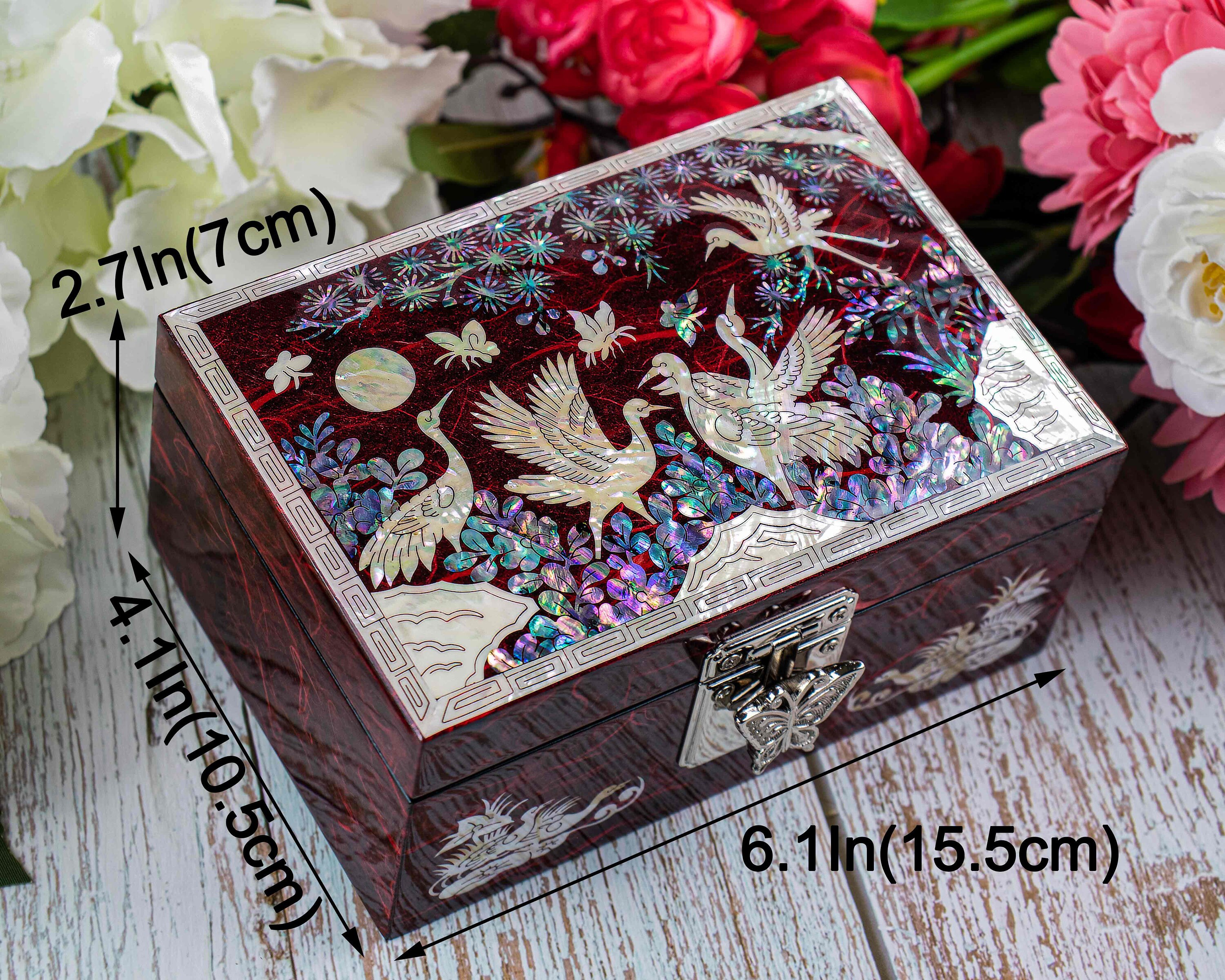 Incrustation nacre Banque de photographies et d’images à haute résolution - Alamy Les coques sont incrustés dans un motif sur une boîte en bois vitré ensuite avec laque protectrice. Mother of Pearl ?Cette boîte à bijoux a été fabriquée à l'aide de la traditionnelle coréenne en nacre incrustation et laque Ware. Le résultat est un élément réfléchissant avec une finition brillante. Symbole de longévité et de paix – Comprend des grues, des pins et un plein soleil, tous symboliques de longue vie et d'harmonie dans la tradition coréenne huîtres, coquilles de mollusques, ormeau et sont doublés naturellement avec des cristaux de carbonate de calcium. La musique ne fonctionne plus. Une boîte à bijoux est utilisés pour maintenir et protéger les bijoux, pierres précieuses, antiquités ou petits souvenirs. Ces cristaux produisent des couleurs irisées lors réfléchissant la lumière. Mesure 10 x 6,5 x 3 cm (10 cm x 6., 5 cm x 3 cm)Livré dans une jolie boîte cadeau prêt pour donnerDe couleur noire avec rose et violetUne boîte à bijoux bijoux fait un cadeau idéal pour Noël, anniversaire, mariage et autres occasions spéciales. ANCIEN COFFRE COFFRET Ancienne Boîte à Bijoux Incrustation Nacre Et Style – Les grues motif symbole de longévité Il y a un manque sur une incrustation. coréenne en nacre biens ont été populaire en Asie depuis la dynastie goryeo 932–1392 ad. Petite taille – 10 cm W x 6,5 cm d x 3 cm H (10 cm x 6., 5 cm x 3 cm) Incrustation en nacre est le handcrafting des coquillages. Très jolie boîte à bijoux/boîte à bijoux vintage en laque de Chine du milieu du XXe siècle Ornée d'incrustations de nacre, de papillons, de fleurs, de bambou et d'un dragon sur le devant. Sur le dessus se trouve la poignée en laiton d'origine sur une base complexe qui peut rester à plat. Le piétement en bois est laqué noir brillant. Le plateau à charnière est doté d'un rabat en... Une jolie petite boîte qui peut également être utilisé comme une pièce décorative en décoration d'intérieur.