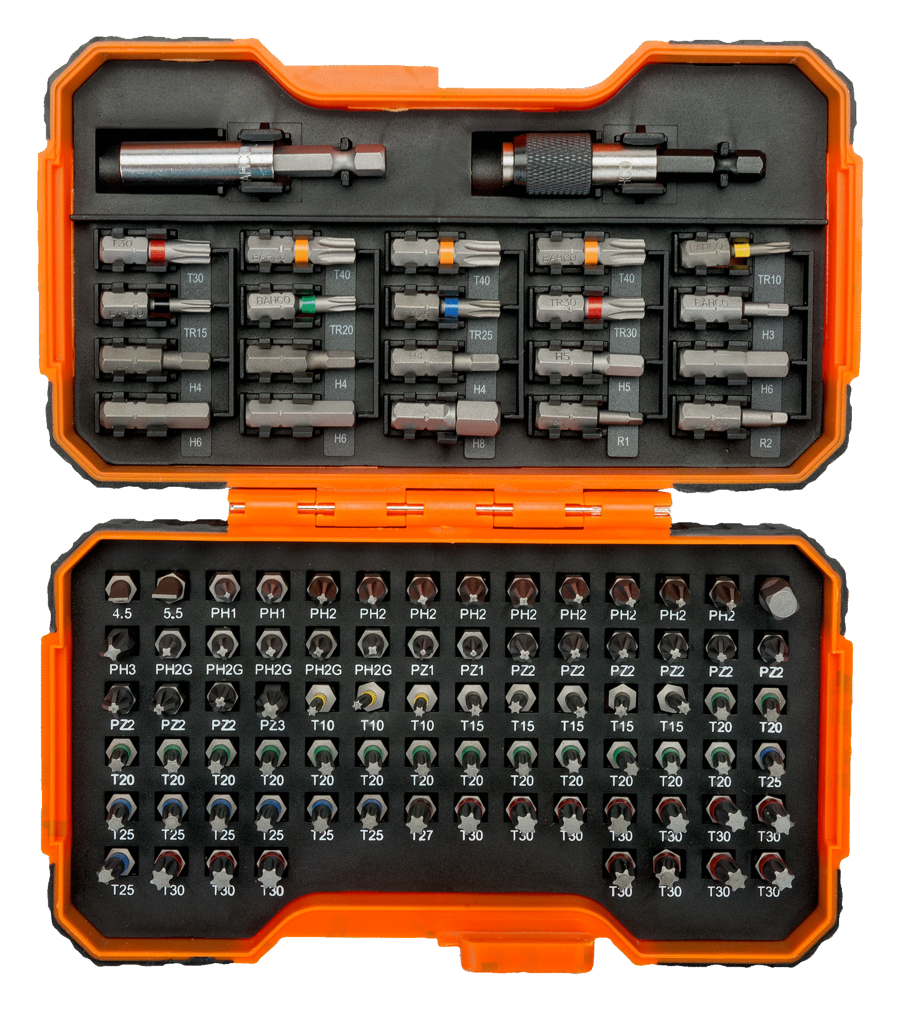 Para tornillos ranurados, Phillips, Pozidriv, hexagonales y TORX® inviolables. Incluye 100 piezas: 97 puntas + 1 portapuntas universal magnético KM653 + 1 portapuntas magnético de liberación rápida KM653-QR + 1 adaptador para vasos de 1/4., 25 mm: Compatible avec les gobelets commerciaux jusqu'à 90 mm de hauteur Jeu d'embouts en caoutchouc 1/4'' pour vis à fente, vis Phillips, Pozidriv et TORX® – 22 pièces | | Switzerland FR Cuadradillo de 1/4, DIN 3126 e ISO 1173, estilo C 6., 3 Puntas robustas y resistentes. Le coffret BAHCO BH59-S100BC-IP contient 100 embouts de vissage colorés en vinyle, chacun emballé individuellement. BAHCO est une marque leader d'outils à main... Gobelet dédié de 240 ml inclus La caja es robusta, resistente y duradera, además, proporciona una excelente protección para las puntas. Adaptador para vasos con cuadrado de 1/4, con bola para llave de vaso normal (estilo C 6., 3). Compatible avec les sachets de café de 60 mm ainsi qu'avec le café moulu Une marque d'outils à main reconnue dont la croissance repose sur l'innovation. Bahco est une marque internationale du secteur des outils à main dont les produits sont conçus et fabriqués par SNA Europe Boite A Embout Acheter - Boîte De Douilles à Embouts - 918.3005 - Outillage Moto BST Boite Embout Puntas Phillips: PH1x2, PH2x9, PH3 y PH2Gx5., Puntas Pozidriv: PZ1x2, PZ2x9 y PZ3., Puntas TORX®: T10 x3, T15 x5, T20 x15, T25 x8, T27, T30 x15 y T40 x3., Puntas inviolables TORX®: TR10, TR15, TR20, TR25 y TR30., Puntas hexagonales: HEX3, HEX4x3, HEX5, HEX6x3 y HEX8., Puntas Robertson: n., º 1 y n., º 2., Para uso universal.