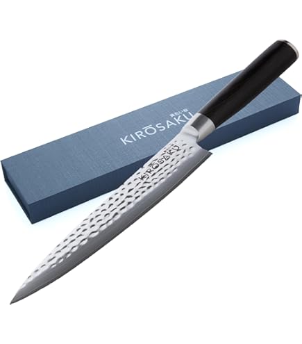 Ces couteaux se caractérisent par leurs tranchants unilatéraux et leurs arêtes de coupe précises, permettant un contrôle optimal lors de la découpe. La technologie de lame utilisée dans la fabrication de cette série garantit la netteté exceptionnelle et la précision des lames. Qualité indestructible et entretien facile : Grâce à sa construction robuste, le couteau Deba est hautement résistant à l'usure quotidienne en cuisine. Chaque couteau est un hommage à la profonde tradition et au design moderne qui distinguent la marque KAI dans le monde entier. En revanche, les deux couteaux de la série Hekiju sont spécifiquement conçus pour les gauchers. Forgé à partir d'acier inoxydable solide de haute qualité 8A et SUS420J2, il allie la netteté et la robustesse nécessaires pour les coupes fines et les hachages puissants. Sa longue lame fine permet des coupes précises et droites pour fileter et portionner le poisson, garantissant des tranches lisses et délicates sans déchirer... Le tranchant à simple biseau permet un contrôle de coupe exceptionnel et une grande efficacité en cuisine. Maître de la coupe traditionnelle : Le couteau Deba est un couperet japonais traditionnel qui, avec sa lame robuste et large, maîtrise aussi bien le filetage précis du poisson que la découpe des petits os et du cartilage. Art de la découpe magistral : Le KAI Seki Magoroku Kinju et Hekiju Deba avec une longueur de lame de 16,5 cm offre une expérience de découpe exquise. Pour une netteté durable et une performance optimale, il est recommandé de le laver à la main, garantissant ainsi que le couteau conserve ses excellentes qualités pendant de nombreuses années. KAI Seki Magoroku Hekiju Deba Linkshänder 15cm ab 45,60 Couperet Japonais KAI Seki Magoroku Kinju Et Hekiju Yanagiba 24,0 Cm - 8A Solide Deba Couteaux Les poignées varient en fonction de la série, offrant à la fois un design en bois laminé hexagonal pour les couteaux Kinju et une prise arrondie semblable au cuir pour la série Hekiju.