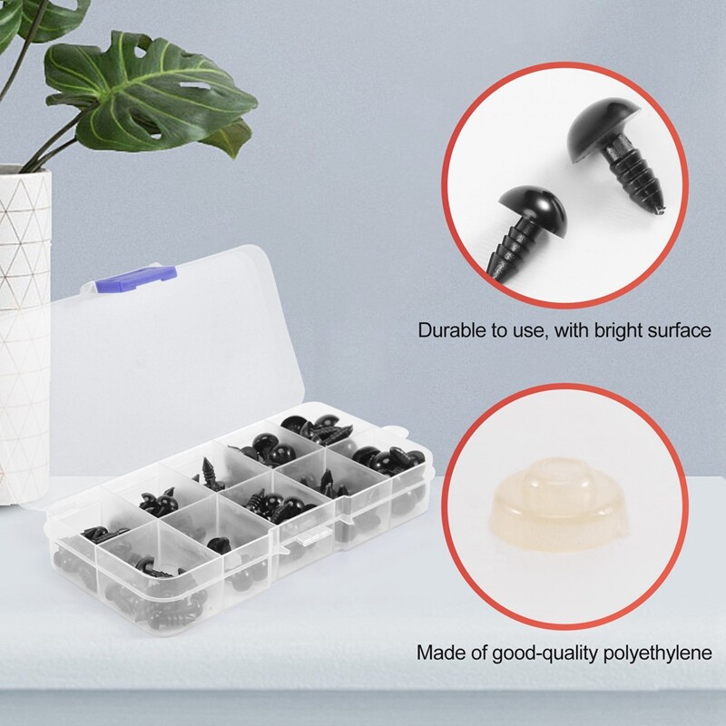 Spécifications: Matériau : polyéthylène Coloris : noir. Quantité : 200 pièces (y compris 100 grands yeux de sécurité, 100 x disques de sécurité) Contenu de l'emballage : Yeux de sécurité inclus : 12 mm x 10 pièces., 14 mm x 10 pièces., 16 mm x 10 pièces., 18 mm x 10 pièces., 20 mm x 10 pièces., 22 mm x 10 pièces., 24 mm x 10 pièces., 26 mm x 10 pièces., 28 mm x 10 pièces., 30 mm x 10 pièces., rondelles., 13 mm., 14 mm., 20 mm. Largement utilisé : les yeux en crochet pour animaux au crochet sont le meilleur accessoire pour tous les types de travaux manuels, adaptés à tous les types de poupées faites à la main, ours en peluche, poupées en peluche, poupées au crochet, yeux matelassés, etc. Avis clients · Facilité d'utilisation (4,8/5) · Rapport qualité / prix (4,2/5) · Performance (4,3/5) · Simplicité d'entretien (4,6/5 Yeux de sécurité pour animaux au crochet. Plastique de qualité supérieure : ces yeux de sécurité noirs pour animaux au crochet sont fabriqués en plastique de haute qualité, robuste et durable, pas facile à endommager, ne se décolore pas, peut être utilisé pendant une longue période. Vous êtes à la recherche d'yeux de sécurité pour la fabrication de jouets, d'ours en peluche ou d'animaux au crochet ? Vous les trouverez ici. Facile à utiliser : nos yeux de sécurité sont équipés de joints appropriés pour la sécurité et la stabilité, vous guident dans la zone que vous souhaitez installer et enfin les fixer avec le joint qui peut efficacement empêcher les yeux de tomber. Plusieurs tailles : nos yeux boutons pour animaux au crochet sont disponibles en 10 tailles : 12, 14, 16, 18, 20, 22, 24, 26, 28 et 30 mm, 10 pièces de chaque taille avec 100 rondelles assorties, plusieurs tailles disponibles, assez pour un usage quotidien et un remplacement. Quantité abondante et différents styles, parfait pour les jouets au crochet, les ours en peluche, les poupées et les peluches etc. Lot de 100 yeux de sécurité en plastique avec rondelles Yeux Sécurité Amigurumi Yeux De Sécurité Au Crochet En Plastique En Vrac Avec 100 Rondelles, Artisanat Au Crochet, Animaux En Peluche Yeux De Sécurité Amigurumi RuWfpz Yeux de Securite Aigurui Crochet 6 - 100pcs Yeux de Sécurité Poupée en Plastique Noir... 100 pièces au total.