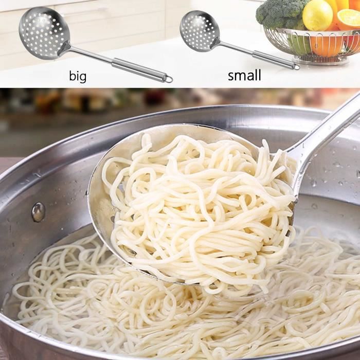 Grand bol concave pour transporter plus de nourriture. Matériau exceptionnel - Notre passoire écumoire a été fabriquée en acier inoxydable de haute qualité, qui est robuste et solide. La boucle de suspension vous aidera à le ranger facilement sans occuper beaucoup d'espace. Passoires à pâtes inox pas chères (2025 Fatigué de la nourriture au blé faite maison mais vous ne trouvez pas un outil approprié ? Une fois que vous avez obtenu notre louche, vous avez : un matériau de qualité alimentaire fabriqué à la main robuste. Design toile d'araignée : le bol conçu en forme de toile d'araignée vous aide à sortir les aliments de l'huile chaude ou de l'eau en toute sécurité. Fabriqué en acier inoxydable de haute qualité, durable. 6 tailles sont disponibles pour votre choix pour répondre aux différents besoins de cuisson. Parfait... Facile à nettoyer et à ranger : cette louche en matériau de qualité alimentaire est très facile à nettoyer. Les fils compacts empêchent les aliments de tomber dans la casserole et de renverser les gouttes chaudes. Transportez assez de nourriture sans être trop lourde. Qiaoker s'efforce de satisfaire 100 % des clients avec les fabricants fournis à vie. Cette passoire vous permet de faire frire et de cuire les aliments de manière appropriée et sûre dans une grande casserole d’huile bouillante. Vous pouvez faire les mêmes frites Français frites, légumes frits, poisson frit et viande que dans le restaurant Notre Top 10 Des Écumoire Araignée En Acier Au France Nous avons testé la longueur et décidé enfin que le bol devrait être de 15,2 cm.