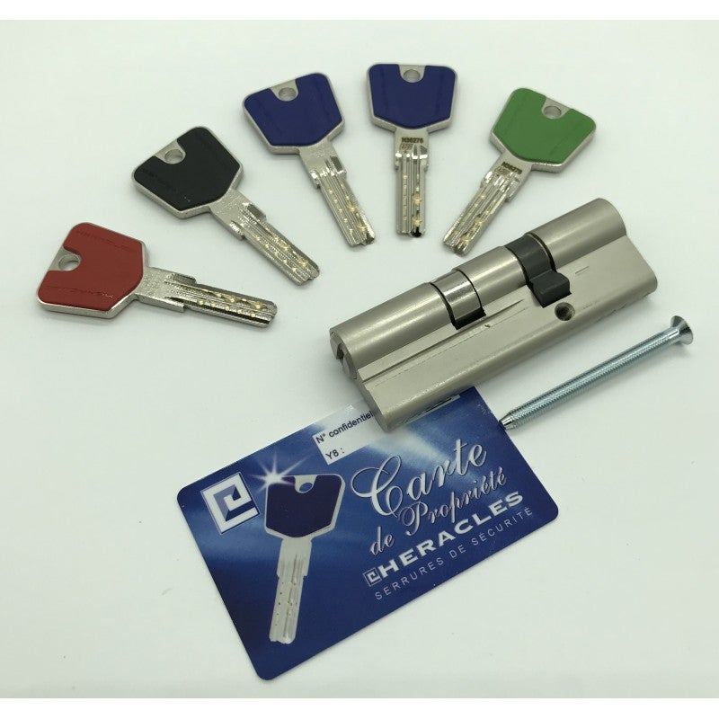 Cylindre HERACLES européen anti-crochetage radial Y7 30x40 haute sécurité avec 5 clés + carte de reproduction de clefs Sa structure rainurée à panneton DIN garantit une compatibilité élevée et une installation sans complications. Ce cylindre peut être fabriqué selon les spécifications individuelles du client, incluant la possibilité d'organigrammes multiples et de systèmes s'entrouvrant. Cette flexibilité permet d'équiper plusieurs accès avec des cylindres fonctionnant avec la même clé, ce qui est fait pour les configurations résidentielles complexes ou les bâtiments commerciaux. Caractéristiques Cylindre européen format 30x40 mm adapté aux portes standard Protection anticrochetage radiale pour une sécurité renforcée contre les manipulations Livré avec 5 clés et une carte de reproduction pour reproductions contrôlées Mécanisme haute sécurité conçu pour un usage durable et fiable Déverrouillage par clé compatible avec serrures à clé... Adapté aux portes coupe-feu et étanches aux fumées. Amig - Cylindre De Sécurité Avec Panneton | Serrure Pour Portes Barillet De Haute Securite Anti Crochetage Et Anti Bumping Inclut 5 Cles Chrom 95217505 Cylindre Serrure 30x30 Cylindre Y8 - HERACLES - 30x40mm - 5 Clés - Anti-crochetage Cylindre Heracles Haute Sécurité Sécurité renforcée: Ce cylindre de sécurité Y7C est équipé d'un système de verrouillage robuste, offrant une protection maximale contre les tentatives d'effraction Conception compacte: Avec des dimensions de 2 x 7 x 3,3 cm, ce verrou peut être facilement installé dans les portes standard 5 clés incluses: Pour votre commodité, ce... Certifié A2P* avec les serrures Héraclès : carénée Sesame et multipoints à encastrer TF3100 et TF5100. Fabrication sur numéro donné, s'entrouvrant et organigrammes ou autre(s) dimension(s) : nous consulter.