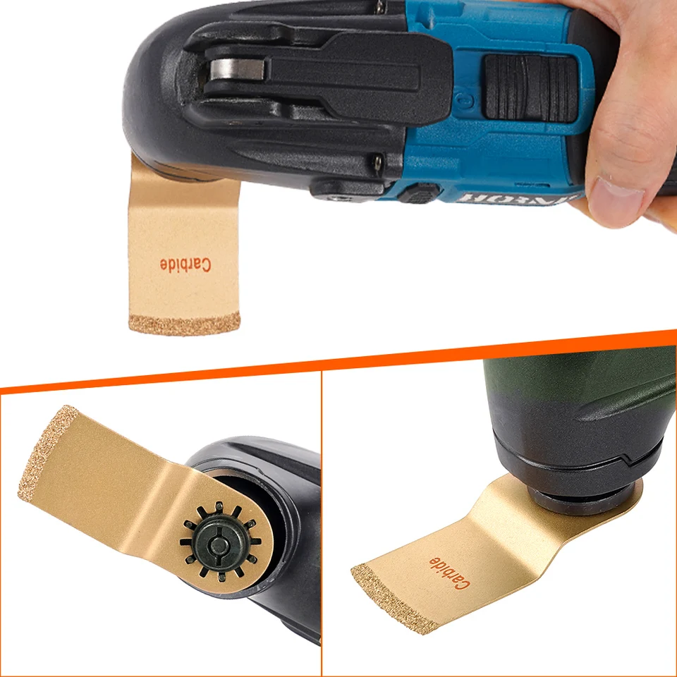 Large application : l'outil de coupe diamant multifonction est une aide précieuse pour la rénovation de la salle de bain, le sol, la coupe et le redressement, le retrait ou la coupe de carreaux défectueux, de gravier, de plâtre ou de joint, la réparation de terrasses en bois, de panneaux de coupe pour installer des prises extérieures et des équipements électroniques et plus encore. Ensemble de 4 scies : le lot d'outils de lames oscillantes dispose de 4 lames de coupe affleurantes de 91 x 36 mm, fabriquées en métal de haute qualité et en diamant - Longue durée de vie qui peuvent être utilisées dans une grande variété d'environnements L'outil de retrait de joint a une large gamme d'utilisations, non seulement pour couper des matériaux de construction, mais également pour couper des tuyaux en plastique dur, du bois, du verre, etc Lame De Decoupe,HCS-Scie Demi-circulaire Oscillante Pour Matériau : le lot d'outils de lames oscillantes est fabriqué en diamant et métal sélectionnés, capacité de coupe tranchante, bord plat et lisse, haute dureté, résistant à l'usure et pas facile à casser; bonne résistance à la corrosion et à la rouille qui peut être utilisé pendant une longue période Lame De Scie Oscillante Lame à Déjointer 3.8mm Pour Scie Oscillante Toutes Marques Enlever Joint L'outil de retrait de joint a une large gamme d'utilisations, non seulement pour couper des matériaux de construction, mais également pour couper des tuyaux en plastique dur, du bois, du verre, etc. Contenu de l'emballage : 1 jeu de lames oscillantes pour enlever les joints. Caractéristiques : Nom : ensemble d'outils oscillants pour enlever les joints. Trankielo - Set De 4 Lames De Scie Oscillantes Diamant Pour Outils Multifonctions, Pour L'élimination Des Joints De Coulis Avec Dégagement Rapide - Idéal...