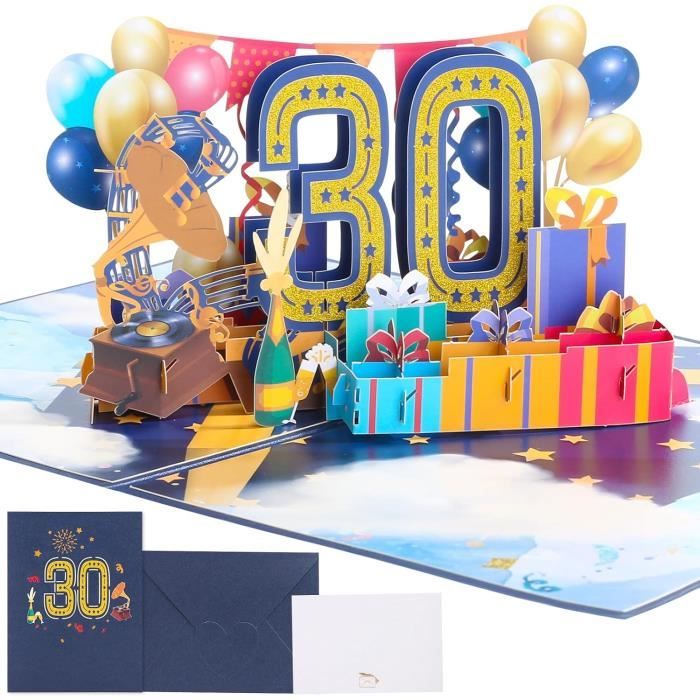 Caractéristiques du produit : carte pop-up pour 30e anniversaire, cette carte d'anniversaire pop-up est parfaite pour célébrer les anniversaires, la Saint-Valentin, le mari, la femme, les enfants, les petits amis et les petites amies de tous ceux que vous aimez vraiment. Carte de vœux pop-up 3D pour 30e anniversaire avec note et Superbe design 3D : cette carte pop-up pour 30e anniversaire est magnifiquement conçue. Lorsque vous ouvrez la carte, le logo brillant du 30e anniversaire doré... Lorsque le destinataire ouvrira la carte, il sera surpris lorsque la superbe sculpture saute hors du papier, créant un moment spécial réconfortant. Lorsque vous ouvrez la carte d'anniversaire 3D, le logo exquis de 30e anniversaire apparaîtra automatiquement. Caractéristiques : Couleur : conforme à l'image. Design unique : la carte de 30e anniversaire est magnifiquement conçue, simple et élégante. Cette carte est inoubliable. Dimensions de l'emballage : 19 x 19 x 0,5 cm., Poids : 56 g., Matériau : papier. Les cadeaux de 30e anniversaire sont assortis avec des ballons de différentes couleurs et de magnifiques décorations de feux d'artifice, apportant d'énormes surprises aux protagonistes de la fête d'anniversaire. Cutpopup Carte Pop-Up Pour La Rentrée Scolaire, Carte D'Anniversaire En... Modèle Carte Anniversaire 30 Ans Xialvyu Carte De Vœux Pop-up 3D Pour 40e Anniversaire Avec Note Carte Anniversaire 30 Ans Fille L'ensemble comprend : le lot de cartes de vœux pop-up comprend une enveloppe, une carte pop-up 30e et une étiquette de message vierge pour répondre à vos besoins d'écriture, d'emballage et de cadeau.