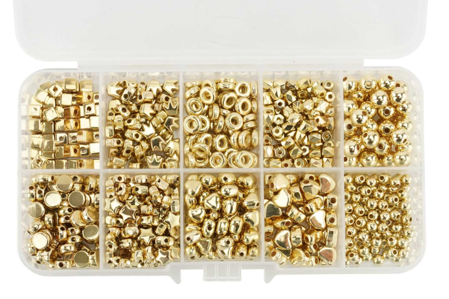 Pette perle nore opaque et brllante. Boîte de 2.5 gr c'est à dre 500 perles envron. Ces... Caractéristiques : Nom : 500 pièces de 10 perles intercalaires., Couleur : doré., Matériau : métal. 10,2 cm, 17,6,6 x 5,6 mm, 8 : 6,5 mm, 9 : 4,9 mm, 10 : 5,9 mm. Coffret de perles dorées - environ 500 perles - Perles Lot De 500 Perles Dorées De 10 Styles Comprenant Des Perles En Forme D Elles sont faciles à assortir avec des perles d'argile, des strass, des perles de pierres précieuses, des perles à grand trou, etc. Convient à la plupart des projets de fabrication de bijoux. Idéal pour les loisirs créatifs. Design artisanal : ces perles dorées sont idéales pour différents projets, tels que la fabrication de bracelets, colliers et autres pendentifs, faciles à attacher avec des cordes ou des chaînes. Contenu : une boîte de 500 perles d'espacement de 10 pièces. Coffret de perles dorées - environ 500 perles · Environ 500 perles en plastique doré, idéales pour les projets de bijoux, de décoration, ou d'artisanat. · Les... Dimensions : 1 : 3,8 x 3,8 mm, 2 : 6,6 x 5,6 mm, 3 : 6 mm, 4 : 5,4 mm, 5,8 x 5,8 mm, 6 : 5,5 x 3,7 mm.