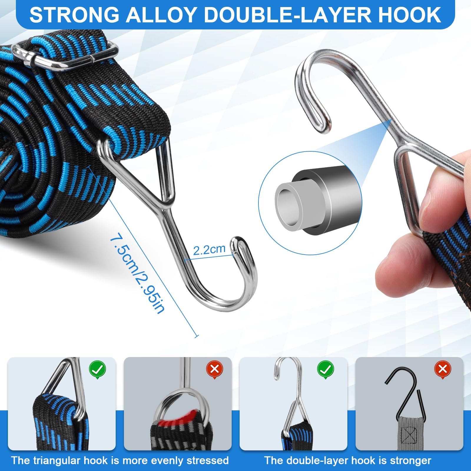 Sac Homme Bandouliere 20 Pack Cordons Élastiques 15 Pouces Avec Crochets, Sangles De B Che En Caoutchouc Epdm Crochets Noirs Pour Camion Vane Moto Cargo B Ches Toiles Et Plu Cable Hogue