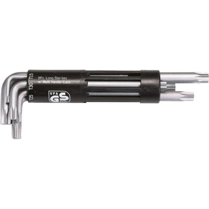 3 extrémités six pans Sa poignée en T, en acier robuste, garantit une bonne prise en main, permettant d'appliquer une force homogène même dans des zones difficiles d'accès. Attribut de fonction 1 : 3 voies Module de clés à pipe débouchées 6 pans KS TOOLS - 11 pièces - 713.2011... Pour les endroits difficiles d'accès dans un boîtier en plastique durable Matériau : chrome vanadium Chromé et oxydé spike Clé Allen KS Tools 158.5100 3 Wege T Griff Innensechskant Schlüssel Satz, 8 Tlg Douille A Choc Ks Tools Profil allen sur trois extrémités 84TC.J8PB | JEU DE 8 CLES MALES 6 PANS EN T - FACOM Grâce à ses caractéristiques techniques et sa conception polyvalente, cette clé répond aux exigences de qualité nécessaires aux interventions fréquentes et intensives. Caractéristiques techniques : Matière : acier chrome vanadium extra-fin, satiné mat, chromé KS Tools Jeu de clés à douille hexagonales à 3 voies avec poignée en T, 8 pièces, 158.5100 · Poids : 1995g · Matériau : acier au chrome vanadium le plus fin...