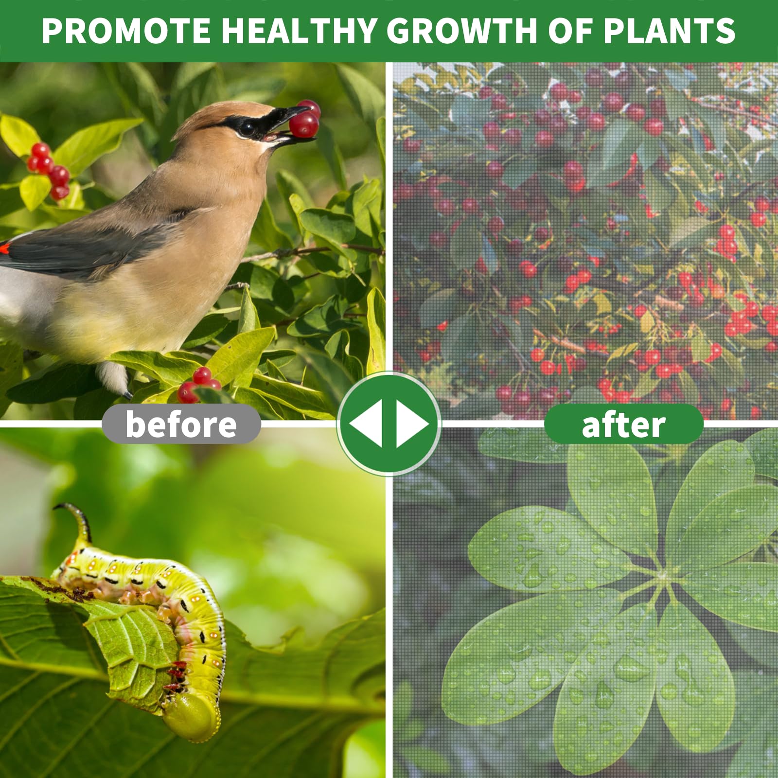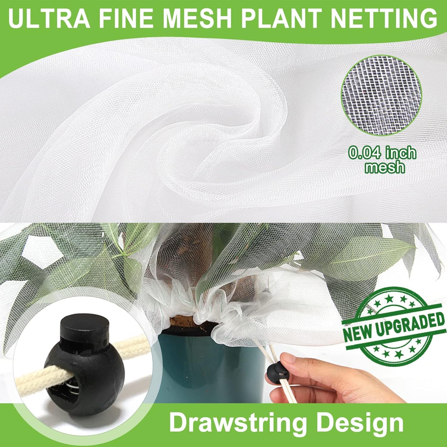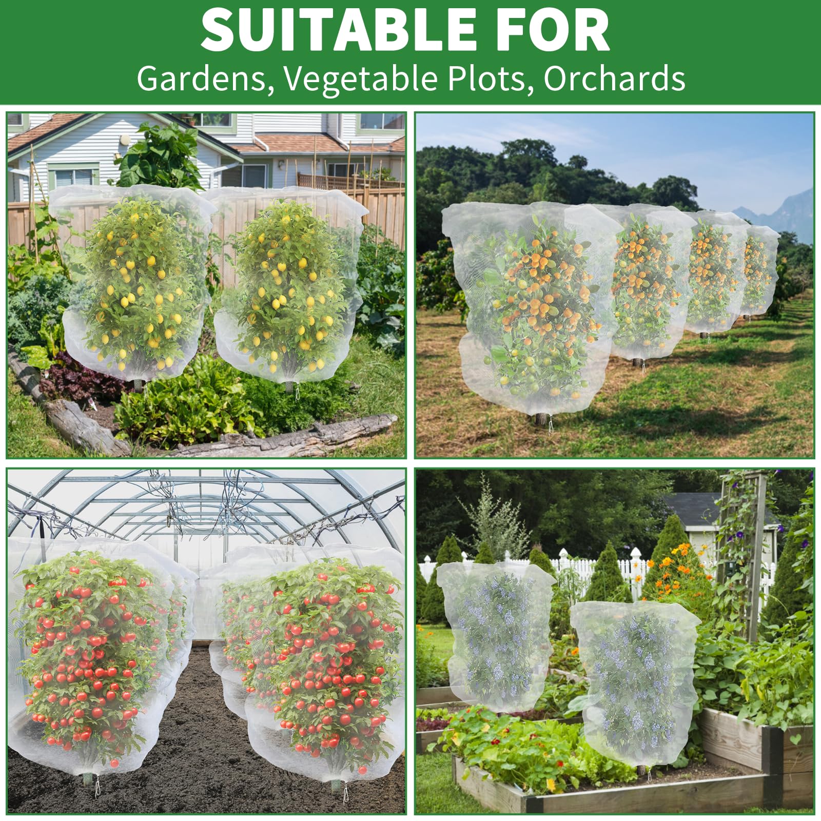 En manque d'idées pour vos travaux et déco maison ? Pensez au filet !! Spécialistes du filet sur mesure français nous vous proposons... Filet léger pour plantes de jardin Avec notre filet de jardin, les plantes, les fruits et les fleurs de votre jardin pousseront mieux Ensemble de filet de jardin en maille : le colis comprend 4 filets de jardin blancs de même taille avec cordon de serrage, nous proposons différentes tailles de filet de jardin pour différents types de plantes, les tailles sont de 0,7 x 1,1 m, 1,2 x 1,4 m et 1,4 x 1,8 m, ce qui peut facilement protéger différentes tailles de plantes. Filet de Protection Contre les Oiseaux - TRAHOO - 7,5 x 15 m - Maille de 5 x 5 cm - Jardin Filet Anti Insectes Gamm Vert Filet De Jardin Pour Légumes - Maille Fine - Blanc - Respirant - Protection Contre Les Insectes Filet Anti Insectes Pour Jardin Il couvre non seulement bien le buisson, empêche les écureuils d'avoir leur chemin avec les baies, mais fait également un bon travail en gardant les insectes hors de sous la maille. Trous fins, aérés et évitent la lumière du soleil trop En outre, ce filet de jardin en maille pour plantes est léger, ne pressera pas votre arbre pour retarder la croissance des plantes. Matériau de haute qualité : ces filets de jardin sont fabriqués en tissage serré de haute qualité, légers, nettoyables et assez durables pour être réutilisés pendant plusieurs saisons. Assez grande pour couvrir les plus grandes plantes de votre jardin, telles que les arbres fruitiers, les arbres à fleurs, les plantes d'asclépiade, le cornouiller nain, les fraises, les tomates, les mûres, les myrtilles, les cerises et les poivriers. Perméabilité et taille parfaites : la maille de notre filet anti-insectes est ultra-fine, aidant à empêcher les petites créatures d'entrer efficacement tout en laissant passer l'eau, l'air et la lumière du soleil en même temps. Matériau de haute qualité : le filet anti-insectes est fabriqué en tissu maille de qualité supérieure, qui est très robuste à utiliser et peut être réutilisé de... Facile à utiliser : vous devez d'abord mettre les filets de protection de jardin sur l'arbre, puis serrer le cordon de serrage au fond, même vous pouvez parfaitement le compléter vous-même.