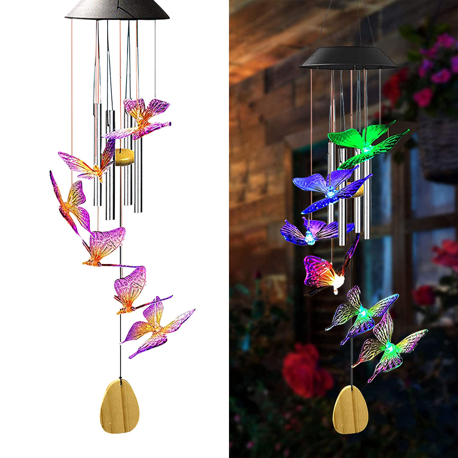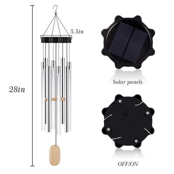 Durable et étanche : construit en plastique ABS durable et résistant aux intempéries, pas de décoloration, pas de changement de forme, pas de peur de la glace et du froid. - Son clair et agréable : même un vent très doux peut faire que nos carillons émettent un son net et agréable, et profiter de l'atmosphère détendue et agréable qu'il apporte. Applique murale solaire extérieure avec éclairage supérieur et inférieur, idéale pour éclairer terrasse, jardin, garage, porche et allée lors de fêtes de Noël, mariages et autres événements. Lot de 4 lampes solaires murales d'extérieur étanches pour jardin, cour, terrasse, balcon, clôture ou porche. Idéales pour les fêtes de Noël - Panneau solaire plus large et puissant : notre panneau solaire est un panneau solaire en silicium polycristallin avec une conversion plus rapide et plus efficace pour la charge pendant la journée et la lumière s'allume automatiquement lorsqu'il fait sombre. Il faut environ 5 heures pour une charge complète, et il peut durer jusqu'à 8 à 10 heures. Remplissez la maison avec de beaux sons magiques. Conseils : Avant de l'utiliser pour la première fois, veuillez charger complètement le carillon solaire sous la lumière directe du soleil, et assurez-vous que l'interrupteur est en position « ON » lors de la charge. Solaire Carillon a Vent Exterieur LED pour Decoration Jardin, Étanche Avec son design d'étanchéité unique, le taux d'étanchéité est IP65., Ne vous inquiétez pas des dommages électriques pendant les jours de pluie ou de neige. Belle décoration : taille et design parfaits pour la décoration intérieure et extérieure. Le carillon papillon charmant et vif crée une atmosphère romantique et intéressante et rend votre vie pleine d'amour et de joie. Fete Des Meres Jardin Carillon éolien Solaire à LED - 123 - Coquille - Décoration Extérieure Papillon Solaire Le carillon papillon charmant et vif crée une atmosphère romantique et intéressante et rend votre vie pleine d'amour et de joie. Durable et étanche : construit en plastique ABS durable et résistant aux intempéries, pas de décoloration, pas de changement de forme, pas de peur de la glace et du froid. Il génère peu de chaleur et est durable et sûr Il génère peu de chaleur et est durable et sûr. Changement de couleurs automatique : ce sont 6 papillons lumineux qui s'allument automatiquement la nuit avec un capteur de lumière et changent doucement différents types de couleurs entre rouge, vert, orange, bleu, jaune, cyan au hasard.
