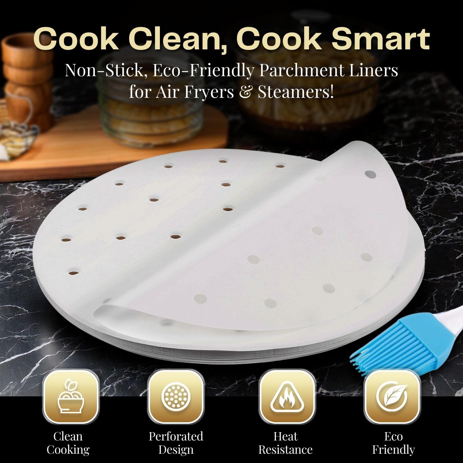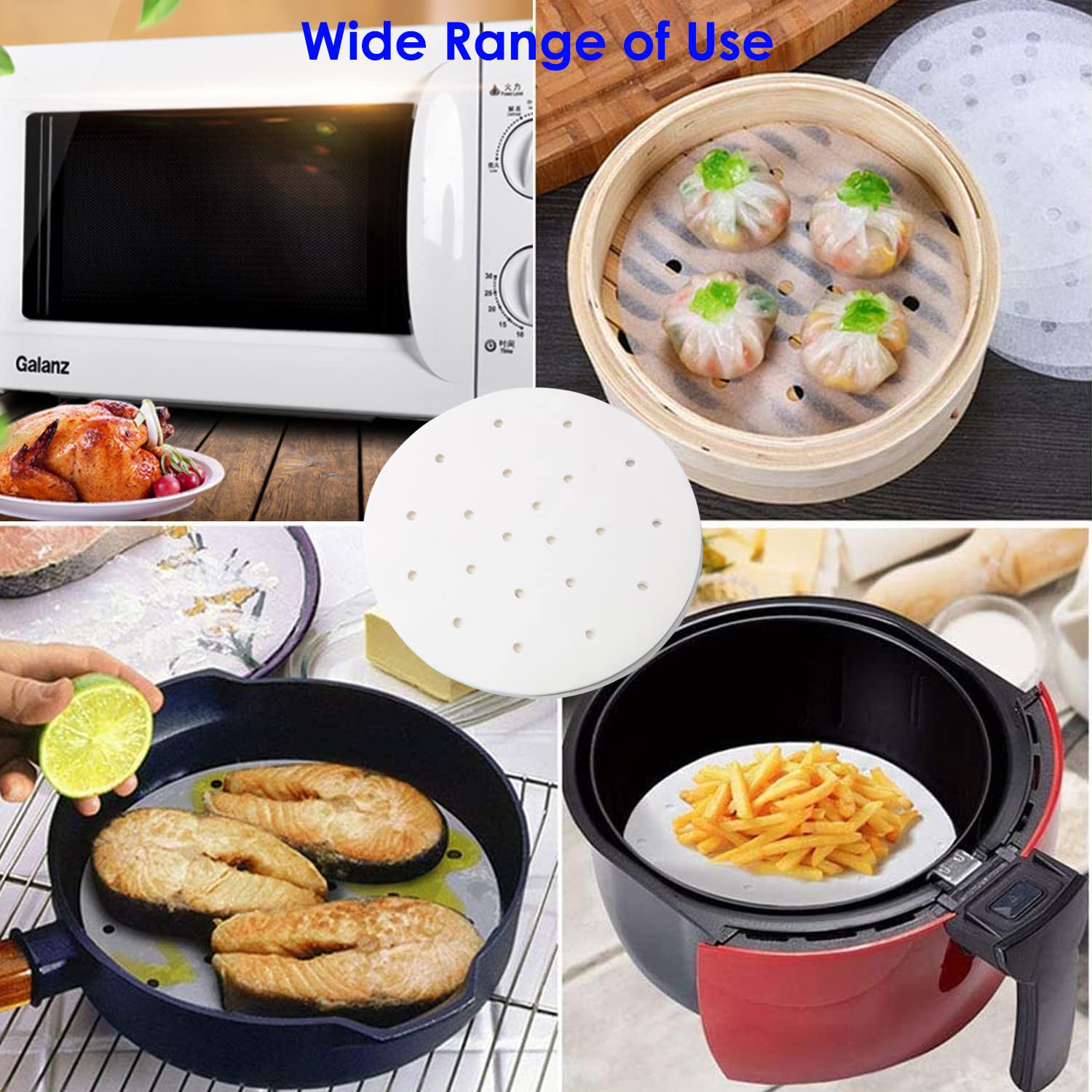 Contenu : 1 feuille de papier sulfurisé perforé pour friteuse à air comprimé, 19,1 cm (100 pièces) - Meilleur accessoire pour friteuse Airfryer, panier vapeur en bambou, papier de cuisson, micro-ondes, four, cuisson antiadhésive. Au lieu d'avoir à nettoyer toute la friteuse, j'ai juste retiré le papier sulfurisé et les huiles qu'il a recueilli. Lot de 100 doublures de papier parchemin pour friteuse à air comprimé de 22,9 cm Cela permet à l'air chaud de circuler librement à travers toute la cavité de la friteuse. Pour friteuse à air comprimé., 100 feuilles par paquet., Taille : 19 cm. Compatibilité 3,5 à 3,7 - Les sacs Air Friryer sont polyvalents et peuvent être utilisés dans la plupart des tailles de paniers et poêles (ne doivent pas être plats pour fonctionner). Si cela se produit lorsque vous cuisinez, vous avez probablement des résidus de graisse dans votre friteuse à air. Vous pouvez non seulement mettre une feuille sous la nourriture, mais vous pouvez également la placer au-dessus de la nourriture pour protéger l'élément chauffant, les murs du micro-ondes, les murs du four pour sauter les huiles et les graisses qui font du désordre et produisent de la fumée Sûr et facile à utiliser : contrairement au papier pour friteuse à air comprimé qui va brunir, brûler et laisser de la cire sur votre poêle et vos aliments à haute chaleur, les feuilles de revêtement pour friteuse sont faites pour une haute résistance à la chaleur jusqu'à 280 °C de votre friteuse à air, poêle, assiette ou cuiseur vapeur. Comprend un pinceau en silicone pour appliquer l'huile de votre choix 1 pinceau à badigeonner et à pâtisserie. Papier Cuisson Perforé Air Fryer Flexzion Papier Sulfurisé Perforé De 22,9 Cm Pour Doublures De Feuilles Air Fryer FLYING-Doublure en Papier Jetable pour Friteuse à Air 100 PièCes SéRies... Papier parchemin rond perforé – Les revêtements en parchemin prédécoupés sont découpés en cercles avec de petits trous pour être parfaits pour votre friteuse à air, poêle, casserole et poêle à vapeur, plaque à micro-ondes, doublure en bambou. Friteuse pneumatique compatible : 3,5 et 3,7 QT.