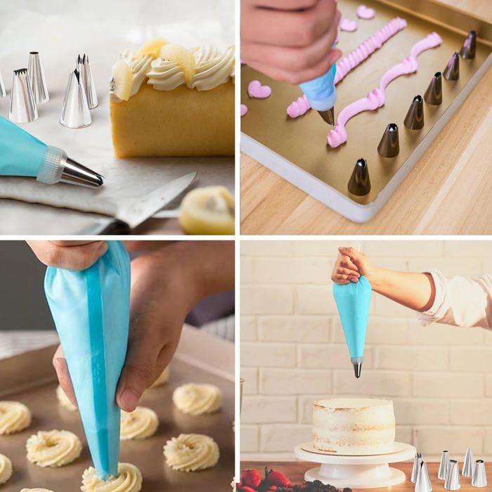 La grande capacité des poches à douille assure une décoration efficace, même pour les grands gâteaux et les lots multiples. Que vous soyez un boulanger professionnel ou un amateur de maison, ce kit de douille de glaçage offre la polyvalence nécessaire pour créer de beaux motifs complexes sur les gâteaux, cupcakes et pâtisseries. Les matériaux durables et le design polyvalent le rendent adapté pour un usage professionnel et la pâtisserie maison. Accessoires Décoration Gâteau Set Pâtisserie 95 Pièces - Douilles Les douilles en acier inoxydable sont idéales pour les applications chaudes ou froides, ce qui les rend parfaites pour remplir des pâtisseries, du glaçage, de la décoration, etc. L'intérieur lisse des sacs assure une pression et un nettoyage faciles, tandis que l'extérieur antidérapant offre une prise ferme. La Poche à douille réutilisable silicone avec ses 14 embouts, permet de décorer gâteaux, entremets, choux à la crème ou autres desserts. Idéal pour toutes les occasions : que vous décoriez pour un anniversaire, un mariage ou tout événement spécial, nos poches à douille et douilles sont le compagnon idéal. Ce kit de glaçage est parfait pour mettre en valeur votre créativité et votre art dans la décoration de gâteaux. Design polyvalent et créatif : nos poches à douille sont compatibles avec une large gamme de buses, vous permettant de créer des étoiles, des fleurs, des tourbillons et d'autres motifs uniques sans effort. Améliorez votre expérience de pâtisserie avec ce kit complet de glaçage et transformez vos desserts en chefs-d'œuvre. Poches à Douilles Pour Pâtisserie Lot De 21 Poches à Douille Et Douilles, 2 Douilles Poche A Douille Lot de 200 Poches Patissières en Plastique pour Glaçage Gâteau, Poches... Qualité réutilisable de qualité supérieure : fabriquées à partir de matériaux de haute qualité, nos poches à douille sont fabriquées en TPU souple et durable, combiné avec du polypropylène et du polyéthylène de qualité alimentaire pour plus de résistance.