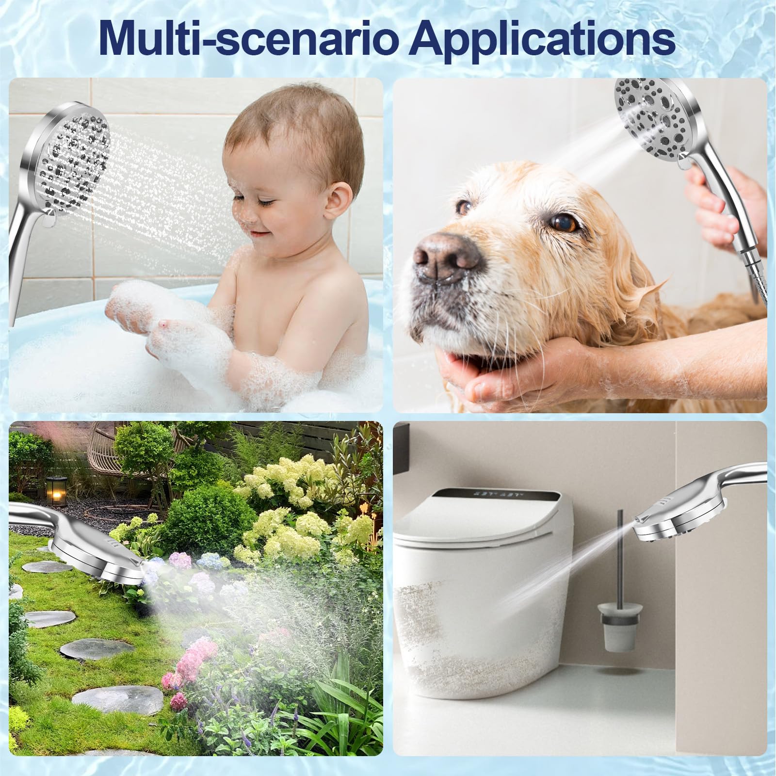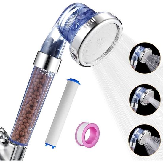 Il suffit de tourner le bouton pour passer d'un mode à l'autre. Les différents modes vous offrent une expérience de douche différente, vous permettant de profiter d'une douche confortable dans la salle de bains. Elle vous apportera une meilleure expérience d'utilisation. Le tuyau de douche de 1,5 m convient pour une interface globale de 1,27 cm et la plupart des pommeaux de douche standard. Convient pour les baignoires, douches et mitigeurs thermostatiques Rinçage de la saleté Le pommeau de douche purificateur d'eau est parfait pour les personnes à la peau sensible et celles qui perdent leurs cheveux. Une bonne qualité à prix abordable. Il est conçu avec des buses en silicone pour éviter les obstructions et est facile à nettoyer. 【Matériau Plus Épais】Le pommeau de douche a été doté d'une finition épaissie améliorée, plus résistante pour garantir une durabilité à long terme et des performances fiables. Avec 3 becs sur le dessus de la pomme de douche, elle dispose d'une fonction de nettoyage à haute pression, qui vous aide à nettoyer facilement les taches tenaces dans les coins morts. Pommeau De Douche Haute Pression 4 Jets - Économiseur D'Eau Tuyau 1.5m Pommeau De Douche Anti Calcaire Douchette Intime Maternité Pommeau De Douche Avec Filtre, Tête De Douche Haute Pression Avec 5 Paumo De Douche Anti Calcaire Le plaisir à la maison : Profitez d'une expérience de spa immersive grâce au pommeau de douche. Notre pommeau de douche haute pression utilise une technologie de pulvérisation avancée pour produire de fines bulles, nettoyant la peau en profondeur tout en préservant les pores et le cuir chevelu. Contrôle personnalisé du débit d'eau : Réglez facilement la pression de l'eau grâce à un... 【Nettoyage Haute Pression】Cette pomme de douche augmente la pression de l'eau dans la douche, assurant un débit d'eau plus fort et une pression d'eau stable, vous donnant une expérience de douche de pluie plus merveilleuse.