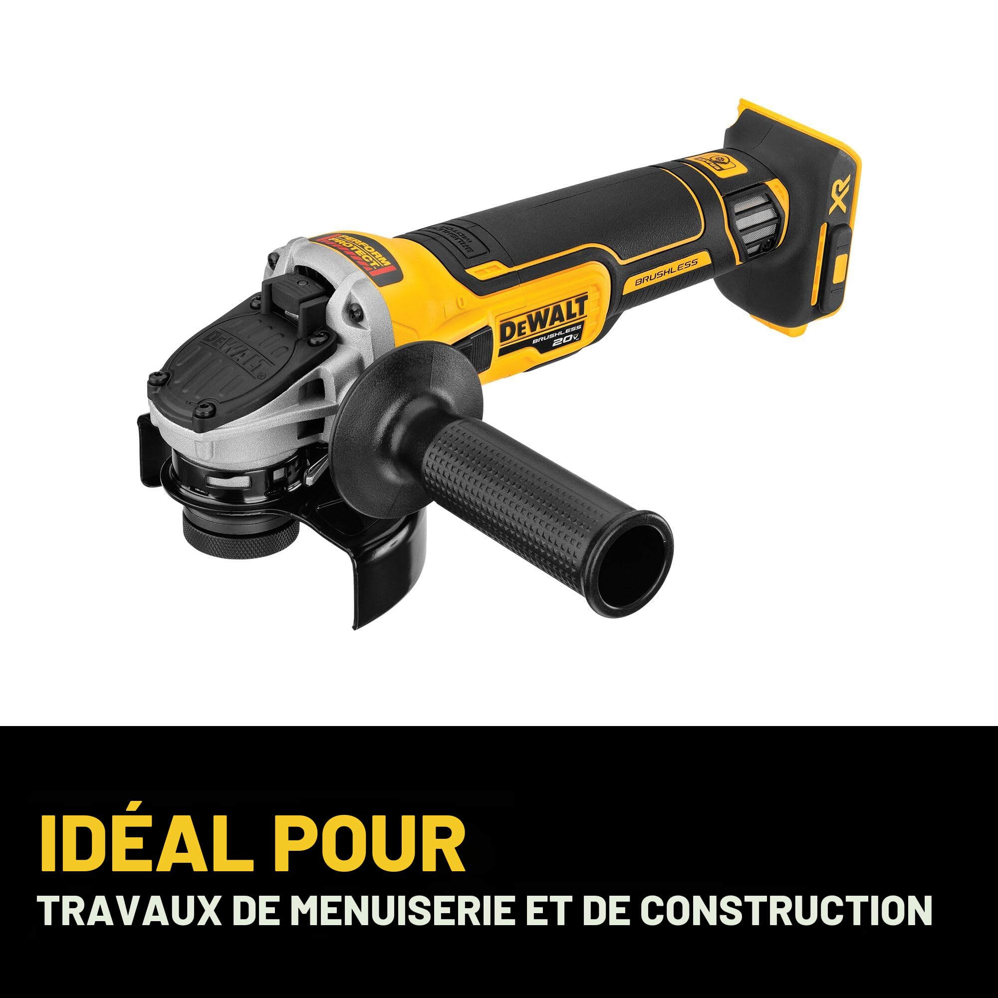 Cette petite meuleuse d'angle sans fil dispose d'un moteur sans balais pour une durée de vie prolongée du moteur et pas besoin de changer de vieilles brosses. DEWALT DCG405N XR Meuleuse d'angle Brushless 125mm 18V (Vendue Seule Moteur sans balai ne nécessitant aucun remplacement de pièces. Le frein antirebond électronique est appliqué avec une force maximale lorsqu'un événement de pincement, de ralentissement ou de grippage est détecté, afin d'arrêter rapidement le disque, réduire le mouvement de la meuleuse et couper le moteur. Fonctionnalité Power-Loss ResetMD - L'interrupteur MARCHE/ARRÊT a une... Meuleuse Dewalt Sans Balai DEWALT Meuleuse D'angle 20V MAX* XR Avec Frein, 12,7 Cm Hikoki 18v En cas de panne de courant ou tout autre arrêt inattendu, l'interrupteur de déclenchement devra être cyclé (éteint puis allumé) pour redémarrer l'outil. MILWAUKEE Meuleuse 4-1/2 - 5 M18 avec interrupteur à palette - Outil... La roue de la meuleuse sans fil DEWALT s'arrête en 2 secondes ou moins. Réinitialisation de la perte d'énergie : l'interrupteur marche/arrêt a une fonction de libération sans volt. DEWALT Le frein de la meuleuse arrête la roue en 2 secondes ou moins en moyenne Aussi avec la batterie XR 18V ce DEWALT DCG405M2 offre une puissance et une performance maximale.