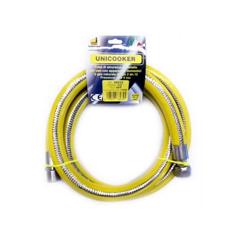 Tuyau de gaz pour cuisine unicooker M/F L 1000 mm 1/2. Flexible inox gaz naturel 1m NF à vie Référence GAZ NATUREL 1M Montage côté robinet gaz. Tuyau Gaz Inox Durée Illimitée Tubo Flessibile Gas Cucina 1 Mt 1/2" EN 14800 UNICOOKER M/F CE EN 14800 L 100 Cm Tuyau Gaz Butane 3m Assurez-vous que le tuyau garantit, selon les spécifications techniques, un débit adéquat, installer en conformité avec les réglementations nationales et locales en vigueur, en respectant les règles d'utilisation et de pratique. Tuyau flexible de gaz de cuisine 1 m 1/2 EN 14800 UNICOOKER M/F CE EN 14800 L 100 cm : : BricolageDemandez le retour de ce produit dans les 14 jours suivant la réception, pour quelque raison que ce soit, afin d'obtenir un remboursement complet (prix de l'article et frais de livraison) dans le cadre de votre droit de rétractation légal. Outre vos droits légaux de 14 jours... Suivre aussi bien les instructions d'installation que celles des fabricants de l'appareil de cuisson, y compris celles pour la position et l'orientation du point de raccordement, ainsi que la réalisation de la mise à la terre dans le cas où elle est équipée d'une installation électrique, il ne faudra pas perdre la garantie sans aucune responsabilité de notre part pour les dommages qui peuvent en résulter. Vérifier l'étanchéité des raccords en les dispersant avec de l'eau savonneuse et ouvrir ensuite le robinet mural, en cas de formation de bulles, fermer le robinet et vérifier à nouveau le serrage. Marquage CE selon EN 14800., Tuyau de gaz CE norme de référence UNI EN 14800/2007., Instructions de montage, utilisation et entretien.