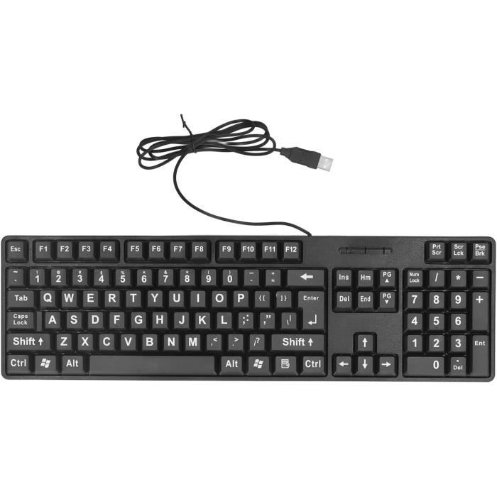 Caractères parfaitement lisibles et contraste maximal Clavier idéal pour débutants, pour personnes ayant des problèmes de vue, par mauvaise luminosité, etc. Clavier filaire spécial à gros caractères, par General Keys. CLAVIER ERGONOMIQUE USB design incliné poignet confort performances Clavier filaire spécial à gros caractères, par General Keys Caractères parfaitement lisibles et contraste maximal Clavier idéal pour débutants, pour personnes ayant des problèmes de vue, par mauvaise luminosité, les séniors etc. Clavier Usb Pour Personnes âgées Geemarc Clavier USB Grands Caractères Et Fort Contraste Clavier Usb Azerty Touches Hotkeys pour mode économie d'énergie, réveil et contrôle du PC Point de poussée agréable pour une frappe détendue Configuration du clavier : AZERTY Branchement via USB, compatible Windows, Mac OS & Linux Dimensions : 448 x 153 x 23 mm Code GTIN/EAN : 3527360059686 Clavier Confort Visuel avec gros caractères (1cm) - 45.5 x 17.1 x 2.2... Marque. General Keys ; Appareils compatibles. Ordinateur (Windows, Mac OS, Linux) ; Technologie de connectivité. USB ; Description du clavier. Multimédia ; Usages... Clavier filaire spécial à gros caractères, par General Keys
