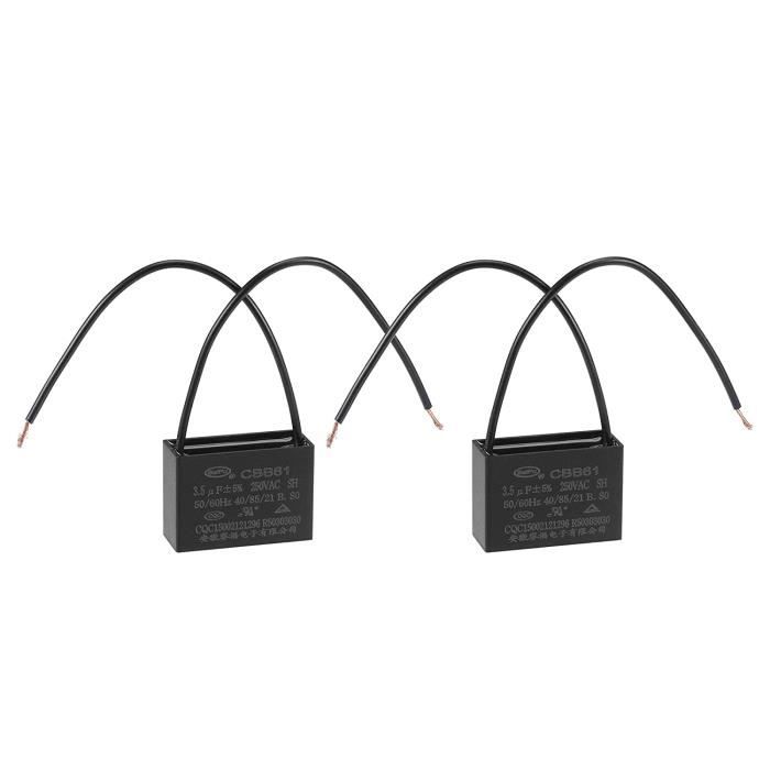 POLYVALENT - Notre condensateur de ventilateur est idéal pour le bureau, la maison et l'utilisation quotidienne, il peut contrôler la vitesse de démarrage et de fonctionnement de différents moteurs de ventilateur tels que les ventilateurs de plafond, les ventilateurs sur pied, les ventilateurs muraux, les ventilateurs de hotte de cuisine, les ventilateurs d'échange d'air et peut également être utilisé pour les pompes à eau, les générateurs, etc. √CE QUE VOUS OBTENEZ - L'emballage contient 1 condensateur CBB61 avec 2 fils, la tension nominale est de 450V AC, la capacité nominale est de 1,5uF (±5%), la fréquence nominale est de 50/60Hz, la catégorie climatique est de 40/70/21, la dimension de l'enveloppe est de 37x23,5x12,6mm / 1,5x0,9x0,5 pouce. Matériau fiable - Ce condensateur de fonctionnement est fabriqué à partir d'un film de polypropylène recouvert d'une coque ABS, qui est compacte et durable. YOKIVE 3 Pièces Plafond Ventilateur Condensateur CBB61, Métallisé Polypropylène Film Condensateur Idéal pour Ventilateurs Pompes Moteurs Fonctionnement (1.2uF 250V AC 2 Fils 50/60Hz VEUILLEZ NOTER - Si le ventilateur de plafond tombe en panne, fonctionne lentement, ne fonctionne pas ou ne fonctionne pas vitesse variable, veuillez d'abord v rifier le condensateur du ventilateur et le remplacer par un neuf. POLYVALENT - Notre condensateur de ventilateur est id al pour une utilisation au bureau, la maison et au quotidien. Ce QUE VOUS OBTENEZ- Le paquet est livré avec 1Pcs CBB61 Capacitor avec 2 fils, la tension nominale est de 450V AC, la capacité nominale est de 1,5uF (+/-5%), la fréquence nominale est de 50/60Hz, la catégorie climatique est de 40/70/21, la dimension de la coquille: 37x23., 5x12,6mm / 1,5x0,9x0,5 pouce. Condensateur Cbb61 6uf 40/85/21 Condensateur De Ventilateur De Plafond CBB61, Condensateur à Film Polypropylène Métallisé Idéal For Les Moteurs De Pompes De Ventilateurs En Cours D'exécution Commutateur à Diode Condensateur Cbb61 Ventilateur CONÇU SPÉCIAL -Le condensateur c61 a pour caractéristiques une faible perte, d'excellentes performances électriques et une longue durée de vie. Conception spéciale - Le condensateur c61 a des caractéristiques de faible perte, d'excellentes performances électriques et d'une longue durée de vie. Condensateur Ventilateur Plafond CBB61 4/4.5/5uF 350V AC 5 Fils Polypropylène Métallisé