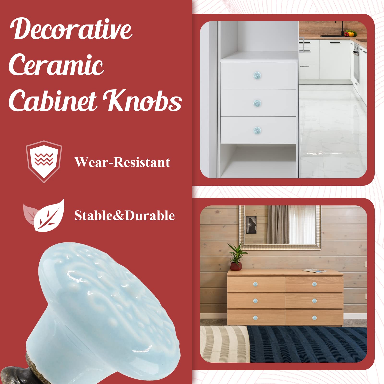 Caractéristiques : Diamètre supérieur des boutons de placard : 34 mm. Hauteur des boutons de porte décoratifs : 30 mm. Installation facile : installation à visser avec vis incluses. Lot de 5 poignées de porte, poignées de porte de cuisine vintage, poignée de porte d'armoire de cuisine avec bouton de tiroir de meuble en céramique Les boutons en céramique pour armoires et tiroirs sont des poignées pratiques et des décorations vintage pour placard, armoire, tiroir, commode, étagère et meubles de porte. Remarque : les mesures étant prises à la main, les tailles indiquées peuvent varier de 1 à 2 mm. Inclus : chaque lot comprend 8 boutons (1 paire de chaque motif) comme indiqué sur la photo. Chaque bouton de placard est fourni avec 1 rondelle, 2 écrous et... Décoratif et élégant : les boutons en céramique brillante sont une décoration antique pour les armoires, les placards, les armoires, les tiroirs de commode de salle de bain. Vis de montage M4 x 46 mm, M4 x 25 mm incluses. Vis pour chaque poignée : M4 x 46 mm, M4 x 25 mm. Satisfaction garantie : si vous ne les aimez pas absolument faites-le nous savoir et nous vous rembourserons votre prix d'achat sans poser de questions Nous sommes convaincus que vous allez adorer nos produits. Caractéristiques : Couleurs : Surface en blanc, doublure en grège. Matériaux : Panneau MDF, acier, velours, verre. Dimensions totales : 54,5 x 54,5 x 162 cm... Bouton Porcelaine Porte De Cuisine Lot De 8 Boutons De Placard Rétro En Céramique Kelier, Style Bouton Ceramique Meuble Diamètre du fond : 14 mm.