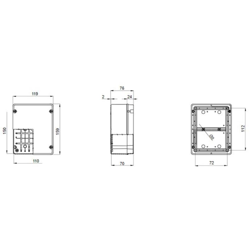 La gamme comprend des versions avec un degré de protection IP44, presse-étoupes IP55, IP56, avec des parois lisses ou avec une saisie rapide et différents types de couvertures : aveugles/transparente, profond, uni//vis de pression (en plastique, également 1/4 de tour, ou en métal). Disponible en différents matériaux auto-extinguible (jusqu à gwt 960 ° CC). Convient pour les jonctions ordinaires, pour des usages spéciaux, et pour les utilisations industrielles. Boîtier Gewiss murale lisse extérieur IP55 300x220x120 GW44209 Zerone Bornier de Jonction 2 pièces Bornier 660V 15A Bornier Barrière... BOÎTE À PAROIS LISSES POUR DÉRIVATION ET POUR APPAREILLAGES ÉLECTRIQUES ET ÉLECTRONIQUES - COUVERCLE HAUT - IP56 - DIMENSIONS INTERNES 380X300X180 - PAROIS LISSES COMBI IN - CALOTTE ÉTANCHE 2 POSTES SYSTEM - COUVERCLE TRANSPARENT FUMÉ - IP55 -GRIS RAL 7035