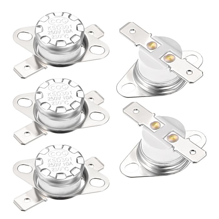 Largement utilisé pour le contrôle de la température ou la protection des appareils électroménagers. Action Température : 100°C/212F; Tension : 250V 10A; Circuit Resistance : 50 Mohm Usage général, réinitialisation automatique, faible coût, grande capacité, thermostats à courant minute. Thermostat Chauffe Eau Happy-MAP Thermostat Température Thermique Contrôle Interrupteur KSD301 Seche Linge Beko Click to shop the largest selection of Animalerie, Art, antiquités, Auto, moto - pièces, accessoires, Auto, moto - véhicules, Bateaux, voile, nautisme, Beauté, bien-être, parfums, Bébé, puériculture, Bijoux, montres, Bricolage, Céramiques, verres, Collections, DVD, cinéma, Électroménager, Équipements professionnels, Gastronomie, boissons, Image, son, Immobilier, Informatique, réseaux, Instruments de musique, Jardin, terrasse, Jeux vidéo, consoles, Jouets et jeux, Livres, BD, revues, Loisirs créatifs, Maison, Monnaies, Musique, CD, vinyles, Photo, caméscopes, Sports, vacances, Téléphonie, mobilité, Timbres, Tout le reste, Vêtements, accessoires. Thermostat bimétallique SOURCING MAP KSD9700 Température Contrôle... Il est fermé jusqu'à ce que la surface atteigne environ 100 degrés Celsius, puis l'interrupteur s'ouvre. L'interrupteur thermique a des caractéristiques de performance stable, de haute précision, de petit volume, de poids léger, de haute fiabilité, de longue durée de vie et de petites interférences radio Poids Net : 11g; Contenu du paquet : 2 x Température interrupteur Thermostat Nom du Produit : Température interrupteur Thermostat; Modèle No. Interrupteur thermostatique sensible Auto KSD302R Interrupteur de