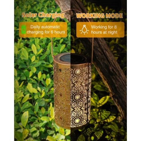 Motif animal ajouré : la nuit, cette lanterne solaire s'allume automatiquement et la lumière brille de l'intérieur de la lanterne, donnant vie aux animaux. Méthode de fonctionnement : après réception du produit, allumez l'interrupteur du panneau solaire, puis accrochez-le dans n'importe quel endroit où la lumière du soleil peut briller, il fonctionnera automatiquement, pas besoin de répéter l'opération. Ce sont des cadeaux significatifs. Lanternes solaires cardinales d'extérieur à suspendre, cadeaux Dimensions du produit : 14 x 14 x 15 cm. Il s'allume automatiquement à la tombée de la nuit, projetant une lumière chaude et apaisante. Lanterne solaire,Lanterne solaire à suspendre pour extérieur, étanche... Cadeau idéal pour le jardin : ces lanternes de porche suspendues sont parfaites pour les anniversaires, la Saint-Valentin, la fête des femmes, la fête des mères, Halloween, Noël et le Nouvel An pour les mères, les grands-mères, les sœurs, les amoureux, les voisins et les amateurs de jardin. Décoration de jardin parfaite : les lanternes solaires suspendues avec un design ajouré et un motif cardinal peuvent projeter de beaux motifs, créant une atmosphère magnifique et confortable, parfaites pour décorer la cour, le jardin, le porche, la terrasse et d'autres scènes. Avant utilisation, vous devez allumer l'interrupteur d'alimentation du panneau solaire (pas besoin de répéter l'opération plus tard), puis accrocher la lanterne où le soleil peut briller pour charger. Satisfaction garantie à 100 % : si vous rencontrez des problèmes de qualité après réception des lanternes solaires d'extérieur, ne vous inquiétez pas et hésitez, vous pouvez nous contacter directement. Design décoratif gracieux : style vintage, avec une couleur cuivre doré et un placage métallique creux, les lanternes solaires projettent une lumière vive et... Pearlstar Lanterne Solaire D'extérieur à Suspendre étanche En Fonctionne à l'énergie solaire : la lanterne solaire suspendue est chargée avec des panneaux solaires à haute efficacité, ce qui est à la fois économe en énergie et respectueux de l'environnement.