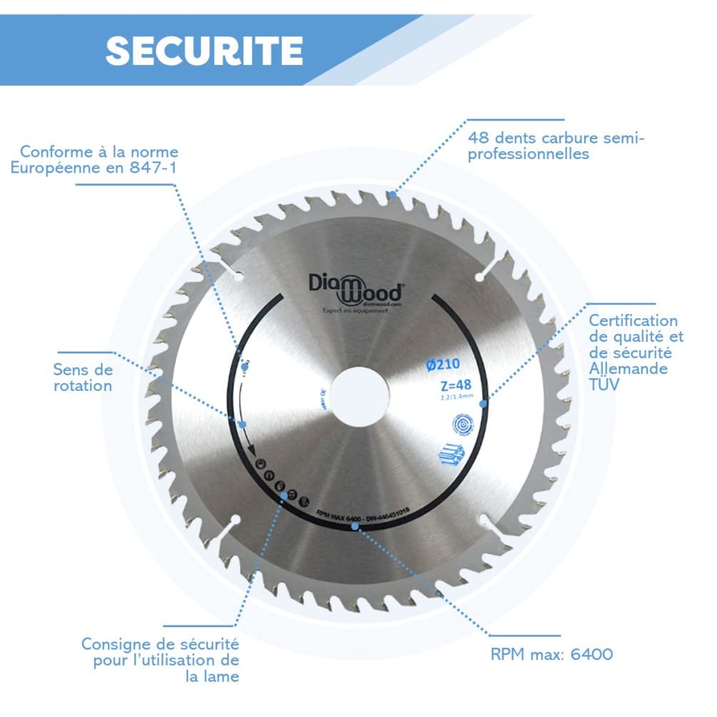 Nos gammes couvrent aussi bien l’outillage à main que les accessoires machines, avec une exigence constante : offrir aux utilisateurs des produits fiables et adaptés à un usage intensif comme occasionnel. Qu’il s’agisse d’outils fragiles, de lames de précision ou de machines lourdes, Dworx veille à ce que vos articles arrivent intacts et prêts à l’emploi. Cette compatibilité universelle en fait un choix idéal pour les artisans, menuisiers et bricoleurs exigeants recherchant précision et sécurité. Chaque outil est soigneusement choisi pour sa solidité et son aptitude à relever les projets les plus exigeants. Choisir DIAMWOOD, c’est opter pour une marque française reconnue, forte de plus de 15 ans d’expertise dans la conception d’outillage professionnel pour le BTP et les métiers du bois. Notre objectif est simple, vous fournir un outillage complet, accessible et durable, afin que chaque projet soit mené avec succès. Chaque commande est emballée avec le plus grand soin afin d'assurer une livraison en parfait état. Generic Lame De Scie Circulaire Pour Bois 180mm - Prix pas cher | CI Sa conception équilibrée permet une coupe fluide, sans vibration ni échauffement excessif, pour un rendu professionnel sur vos projets de menuiserie, d’aménagement ou de construction. Nous proposons également une large variété d’outils pour machines dont des forets, disques diamant, lames de scie et mèches de défonceuse qui sont conçus pour offrir une qualité de coupe et une durabilité optimale. Scies Circulaires à Table électriques Lame De Scie Circulaire HM Universelle D. 255 X Al. 30 X ép. 3,2/2,2 Mm Lame Scie Circulaire 160 L’angle d’attaque négatif de 5° offre une meilleure maîtrise de la coupe, tandis que l’angle de dépouille de 15° optimise la pénétration et réduit les efforts sur la machine. - Angle de dépouille : 15°-Type de denture : Trapézoïdale plate 45° - Trous d'ergots normalisés : Sans TE *Marque Française professionnelle. Grâce à sa denture trapézoïdale plate à 48 dents négatives, elle assure un travail précis aussi bien sur le bois tendre, le bois exotique, les panneaux, le PVC, l’aluminium que sur les métaux non ferreux. Elle est livrée prête à l’emploi, avec ses accessoires d’adaptation, pour garantir une mise en service rapide et sans contrainte. [ APPLICATIONS ] : Cette lame de scie carbure permettra la découpe propre droite et précise de tous vos matériaux en aluminium, vos métaux non ferreux, du bois tendre ou bois exotique ou de vos panneaux et PVC. C’est pourquoi Dworx met tout en œuvre pour assurer une préparation et une expédition rapide de vos commandes. Réactif et disponible, le service client Dworx est là pour vous accompagner avant, pendant et après votre achat, afin de vous assurer une expérience fluide et sereine. Un partenaire fiable pour vos projets Avec plus de 15 ans d’expérience, Dworx se positionne comme un spécialiste de confiance pour tous vos travaux. Vous recevez ainsi vos outils dans les meilleurs délais, pour pouvoir passer immédiatement à l’action. Lame de scie circulaire pour bonne finition du bois - Disques et lames... 210 Mm Alu00e9sage 30 Mm 48 Dents Universelle Scie Radiale Débit Universelle Finition convenant à la découpe : Aluminium, métaux non ferreux, bois massif... Tout l’outillage qu’il vous faut Chez Dworx, nous proposons une gamme complète d’outils et de machines adaptés aux besoins des particuliers passionnés comme des professionnels exigeants. Fabriquée en carbure de tungstène de haute qualité, cette lame garantit une durée de vie prolongée et une excellente résistance à l’usure, même en utilisation intensive.