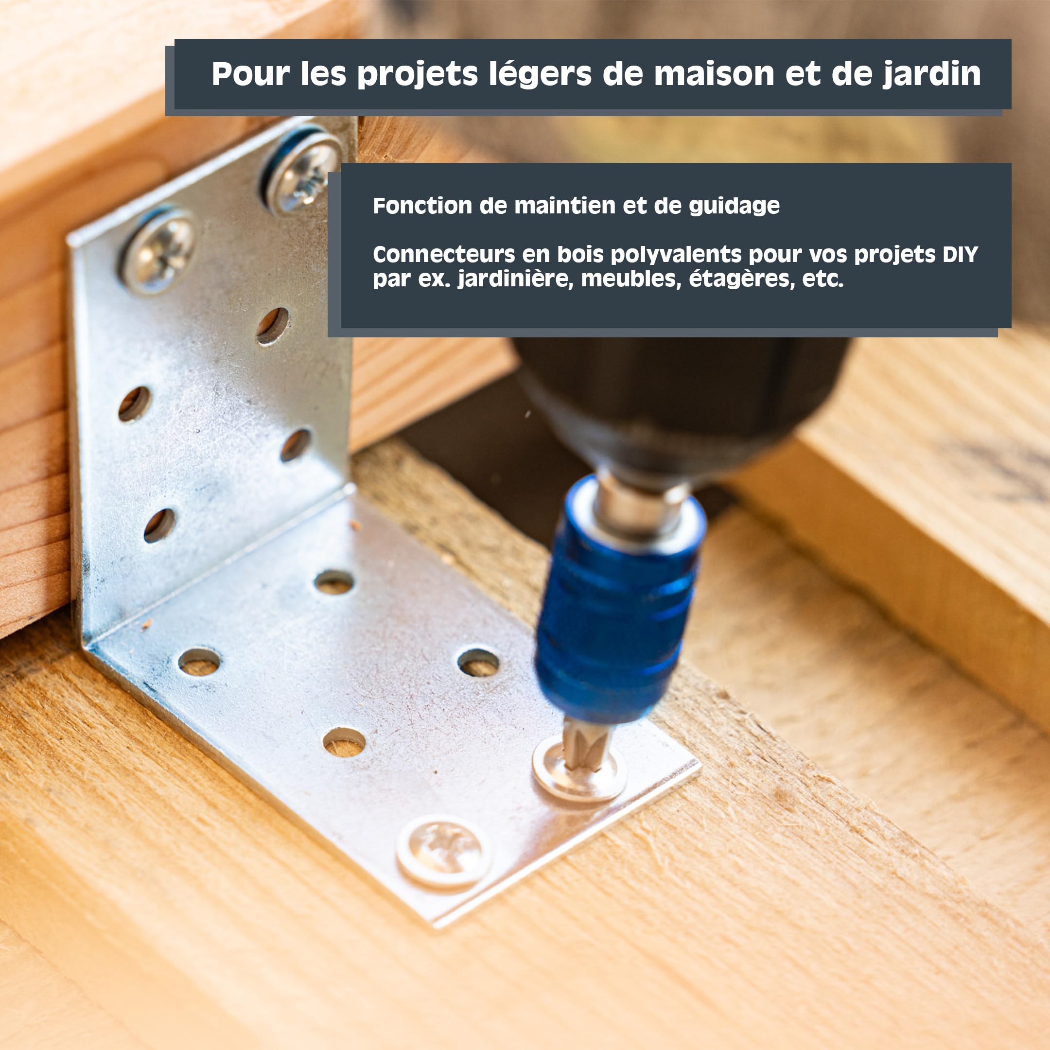ASSOCIATION SOLIDE DU BOIS: avec nos platines perforées zinguées HELPMATE, vous pouvez assembler des éléments en bois de manière sûre et stable, par exemple pour des meubles, des étagères, des constructions en bois ou des projets de bricolage. Avec les plaques perforées galvanisées HELPMATE, tu obtiens un solide connecteur de bois pour tes projets ! ASSOCIATION SOLIDE DU BOIS: avec nos platines perforées zinguées HELPMATE, vous pouvez assembler des éléments en bois de manière sûre et stable... Que tu construises des meubles, que tu montes des étagères ou que tu réalises des constructions en bois, ces plaques perforées de haute qualité t'offrent de nombreuses possibilités d'assemblage. Grâce à leur montage simple, les panneaux perforés sont la solution idéale pour assembler rapidement et facilement des éléments en bois. Fischer Power-Fast II FPF II Vis à bois aggloméré 4,5x50 mm, 200 pcs... Les trous prépercés dans les plaques perforées te permettent d'utiliser de manière flexible différentes positions dans le bois et de réaliser différents angles et constructions. Pate A Bois HELPMATE - 12 Pièces De Plaque Perforée 60 × 200 Mm - Galvanisé & Passivé Bleu - Assemblage Bois Avec Une Excellente Protection Anti-corrosion, Stable & Durable - Montage Facile Plaque Acier ROBUSTE & LONGUE DUREE: les platines perforées zinguées sont fabriquées en acier de haute qualité et permettent un assemblage robuste et durable qui résiste à la charge et assure la stabilité de la construction en bois. AERZETIX - C58306 - Lot de 4 Plaques d'assemblage perforées 80x300x2 mm Grâce à leurs multiples possibilités d'application, elles sont idéales pour une utilisation à l'intérieur et à l'extérieur, ainsi que pour les projets de bricolage et les travaux manuels. <br/POSSIBILITÉS D'ASSOCIATION FLEXIBLES: les trous prépercés permettent des possibilités d'assemblage flexibles, car ils peuvent être fixés à différentes positions dans le bois et permettent différents angles et constructions. <br/MONTAGE FACILE: Les platines perforés sont faciles à monter, sans nécessiter de travaux de bois complexes ou d'outils spéciaux. POSSIBILITÉS D'ASSOCIATION FLEXIBLES: les trous prépercés permettent des possibilités d'assemblage flexibles, car ils peuvent être fixés à différentes positions dans le bois et permettent différents angles et constructions. Fabriqués à partir de matériaux de haute qualité, ils offrent un assemblage fiable et stable qui résiste également aux charges et garantit la stabilité de ta construction en bois.