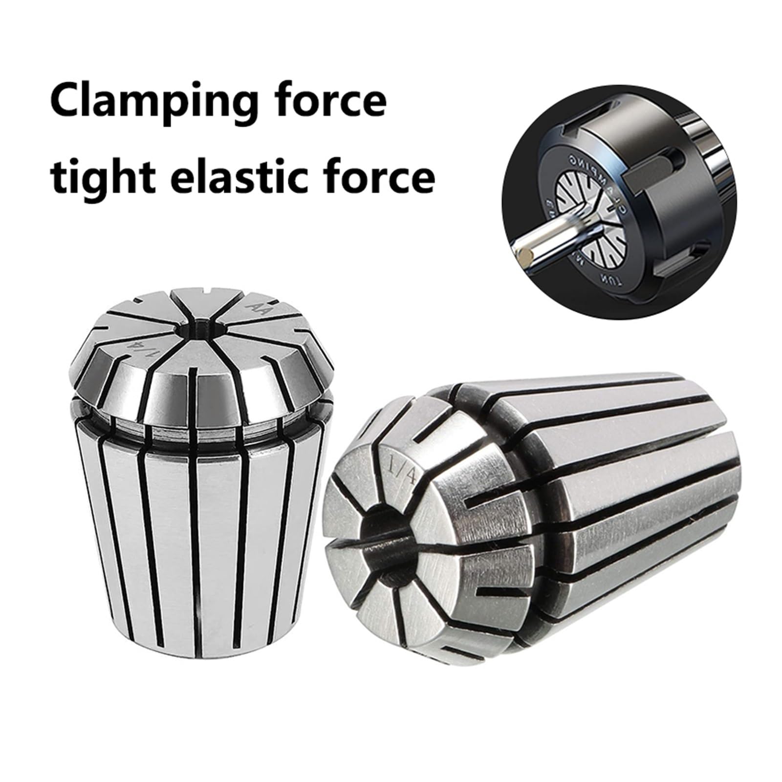 Jeu de pinces ER ER11 ER16 ER20 ER25 ER32 ER40, haute Haute serrage : tolérance de 0,015 mm sur tous les modèles, y compris ER32 et ER40 précision constante lors des opérations de fraisage, de perçage, de taraudage et de gravure avec finition rectifiée à 0,4 microns pour un engagement fluide de l'outil et une réduction des vibrations Applications Ensemble De Pince À Ressort ER11 ER16 ER20 ER25 ER32