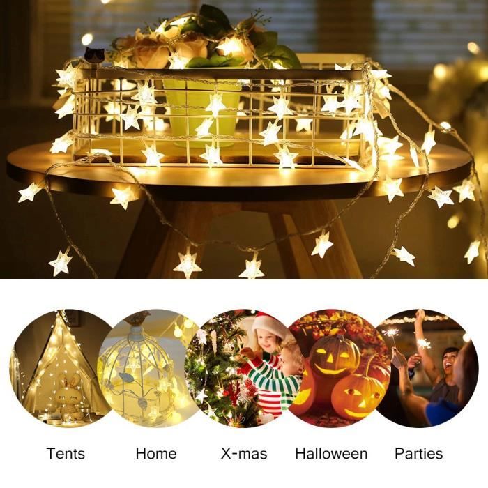 Une pluie d'étoiles pour Noël ! 50 micro LED blanc chaud avec effet statique sont distribuées sur ce cable transparent Guirlandes à Piles, Lucie Discreet Light Guirlande 30 Micro LED Etoiles A Piles Interieur 15m Petite Guirlande Lumineuse à Pile Lights4fun Guirlande Lumineuse De 50 Micro LED Étoiles En Gomme Blanche à Piles Pour Déco Intérieur Guirlande Lumineuse Chambre Pour illuminer cette guirlande lumineuse de 50 étoiles lumineuses en gomme blanche a LED blanc chaud vous aurez besoin de 3 piles AA/LR06 qui ne sont pas incluses Guirlande lumineuse à piles 40 LED 1,95 m Étoiles Blanc froid - Déco de... Notre guirlande micro-LED en étoiles apportera la touche finale parfaite à votre déco de jardin ou d'intérieur pendant les fêtes. Insérez 3 piles AA dans le boîtier, programmez la Fonction minuterie 6h et patientez jusqu’au soir pour la voir s’illuminer automatiquement à la même heure. Réparties à intervalles réguliers sur un câble argenté de 4,90 m de long, chaque étoile mesure 2 cm seulement et s’illumine grâce à une LED blanc chaud. Projetez une lueur blanche froide à travers votre maison ou jardin avec notre guirlande lumineuse à piles et ses 50 micro LED blanches.