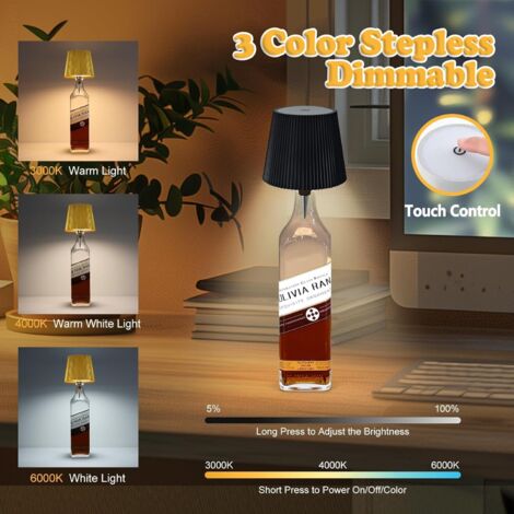 【COMPATIBLE AVEC TOUS LES TYPES DE BOUTEILLES】Lampe à bouteille sans fil Cette lumière de bouteille de vin est adaptée à différents types de bouteilles de vin, elle est facile à démonter et portable, c'est une solution d'éclairage unique et élégante, notre lumière LED de bouteille de vin a une forme élégante et une finition impeccable, elle peut ajouter une atmosphère sophistiquée à n'importe quelle pièce, selon votre préférence, vous pouvez la placer là où vous en avez besoin Elle convient aux bars, cafétérias, salles à manger, chambres à coucher et à l'extérieur, une option d'éclairage polyvalente et élégante pour illuminer n'importe quelle pièce ! Lampe de table rechargeable sans fil avec ampoule LED, tactile, dimmable, décorative, moderne, pour la chambre, lampe de bureau - Chine Lampe de table sans fil, Lampe de Table Conçu pour les kits de lampes pour bouteilles de vin et d'alcool, il offre une durabilité exceptionnelle – parfait pour les bars, la décoration intérieure ou comme kit de lampe pour bouteille de whisky La lumière sans fil est conçue pour être utilisée dans une variété de zones intérieures et extérieures, les températures froides peuvent affecter la performance de la batterie et réduire la capacité et l'espérance de vie Lampe Bouteille Sans Fil Rechargeable Lampe De Bouteille De Vin à Persiennes Colorées, Lampe De Table Portable Creative Mobile Veilleuse A Tete De Vin Blanche 91756939 Botlamp Bouteille Sans Fil Gradation en continu (10%-100%) ; contrôle de l'interrupteur tactile, toucher légèrement pour changer le mode de lumière, appuyer longuement pour contrôler la luminosité de la lumière. 【Lumières LED recyclables et rechargeables】La LED Bottle Light dispose d'une batterie rechargeable intégrée de 4000 mAh et est livrée avec un câble de charge USB Type-C pour le chargement, avec un temps de charge de 4 à 5 heures et une durée d'utilisation allant jusqu'à 10 à 25 heures, en fonction de la luminosité sélectionnée. Léger et portable, il convient au camping en plein air, aux réunions de famille, à l'éclairage des dîners et à d'autres lieux, créant ainsi une atmosphère romantique Avec sa batterie de 1200mAh, elle offre une grande flexibilité d'utilisation, que ce soit dans un bar, un restaurant ou pour des occasions spéciales. Son design...