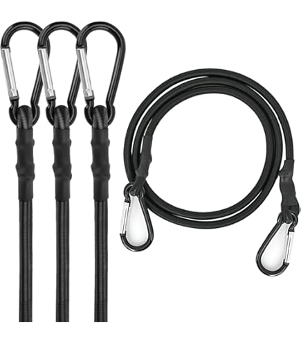 Élastiques professionnels avec mousqueton à clipser pour une utilisation commerciale ou occasionnelle. Aperçu Description 4 par emballage : cordons élastiques industriels Bungey de 91,44 cm/36 po seront les outils les plus pratiques que vous pourrez posséder. Les cordons sont d'une épaisseur de 9,5 mm/0,27 po et ils ont des crochets de chromate plaqué jaune pour de la protection contre la corrosion. Vous souhaiterez garder ces cordons à portée de bras en tout temps! Corde élastique... Achetez VEVOR Tendeur Élastique, Lot de 30, Cordes Élastiques Robustes, 0,25 m, 0,46 m, 0,6 m, 0,9 m, 1,2 m, 1,5 m, 1,8 m, Mousquetons Acier, Sac de Rangement, Clips, Attaches, pour Auvent, Cargaison, Camping au prix le plus bas, livraison en 2 jours, retour sous 30 jours. Lot de 4 tendeurs à clip. Longueur du lapin – 900 mm., Extensibilité maximale – 1350 mm. Élastique robuste pour sécuriser les charges en toute sécurité Pinces à ressort haute résistance pour une fixation sécurisée Idéal pour sécuriser des charges surdimensionnées ou pour envelopper des paquets plus gros Utilisez ces cordons pour une fixation rapide et pratique. SPÉCIFICATIONS DU BUNGEE Taille du paquet : 4 pièces. Élastique robuste pour sécuriser les charges. Cordon élastique résistant de 10 mm de diamètre offrant une puissance de maintien maximale et une tension constante. Largeur du lapin – 10mm, Tendeurs de 91,4 cm. Cordon Mousqueton VEVOR Tendeur Élastique, Lot De 30, Cordes Élastiques Robustes, 0 Corde Avec Mousqueton Extérieur Voici le nouveau chapitre de cette histoire, la corde élastique avec mousqueton SlideLock. Cette corde élastique de qualité supérieure est fixée à l'aide de 2 mousquetons à doigt coulissant à chaque extrémité. Les mousquetons verrouillables évitent les dérapages de l'élastique (et les blessures éventuelles) et assurent une connexion fiable sur laquelle vous pouvez compter. En Cordon élastique robuste, sangle d'attache élastique, mousqueton, crochets, Kayak, cyclisme, bagages, cordes d'emballage, accessoires de Camping