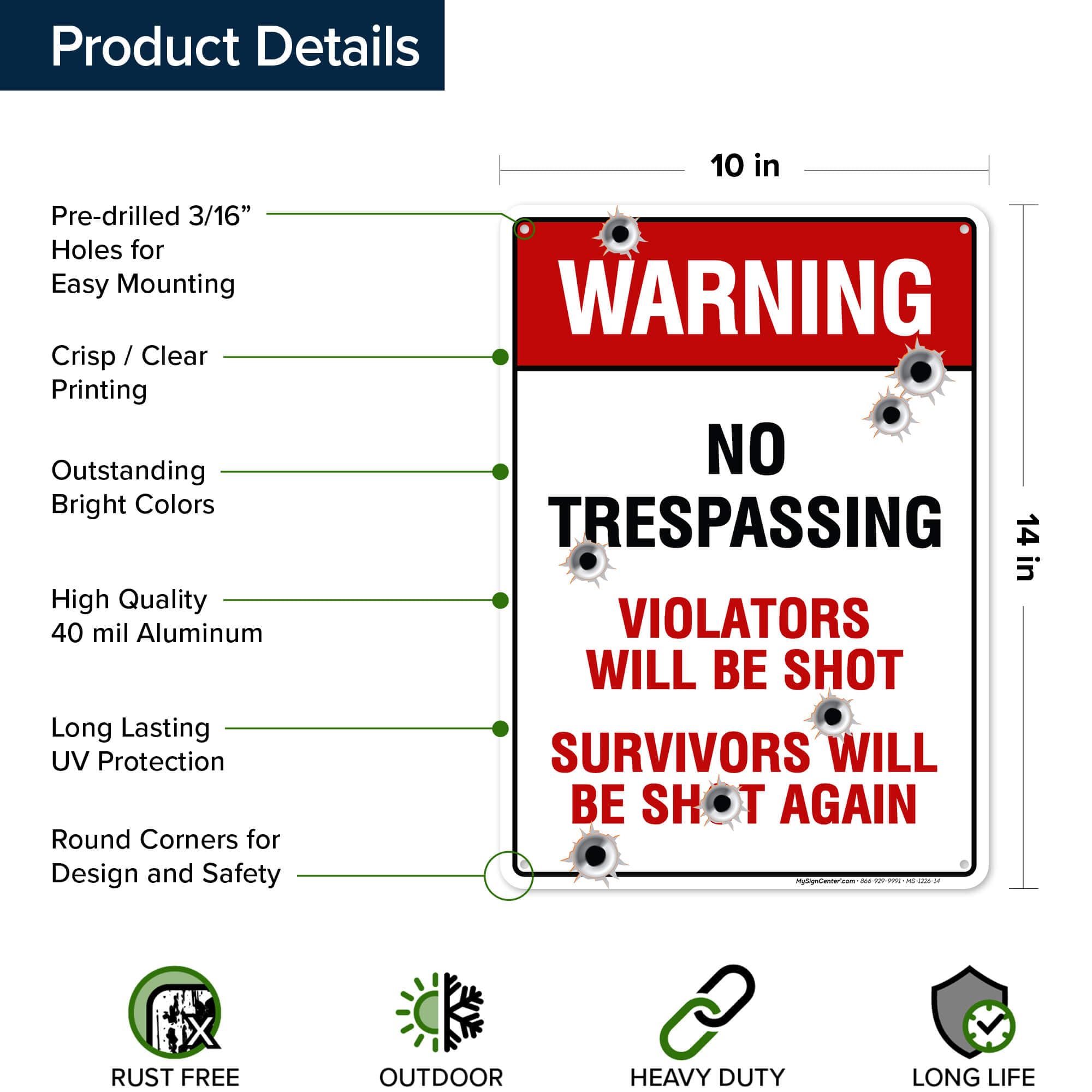 Contenu de l'emballage et taille : chaque colis comprend 1 panneau mesurant 25,4 x 17,8 cm. Votre satisfaction est notre priorité. Private Property No Trespassing Lot de 4 panneaux métalliques 60X Crochet Pour Panneau Perforé Mural, Acier Massif De 5 Mm Avec... Si vous rencontrez des problèmes ou avez besoin d'aide, notre équipe de service client est prête à vous aider. Tennessee Panneau « No Trespassing Private Property » - 25,4 X 17,8 Cm - Aluminium 040 Antirouille - Résistant à La Décoloration - Fabriqué Aux États-Unis Sigo Signs Veuillez noter que ce colis n'est pas livré avec des accessoires de fixation tels que des vis, des attaches zippées ou des clous, ce qui permet des options de montage flexibles pour s'adapter à votre application. Service après-vente : nous sommes fiers de la qualité de notre panneau d'instructions de livraison. Options de montage polyvalentes : conçu avec des trous de montage pré-percés dans les coins, cet article offre des options de suspension sans tracas à l'aide d'une corde de jute, d'un ruban adhésif en mousse double face, de bandes de commande ou de clous, assurant un affichage sûr sur diverses surfaces. DAGUI Lot de 2 panneaux de sortie – 25,4 x 17,8 cm – Signalisation métallique en aluminium .040 antirouille – Facile à monter, résistant aux intempéries et aux...