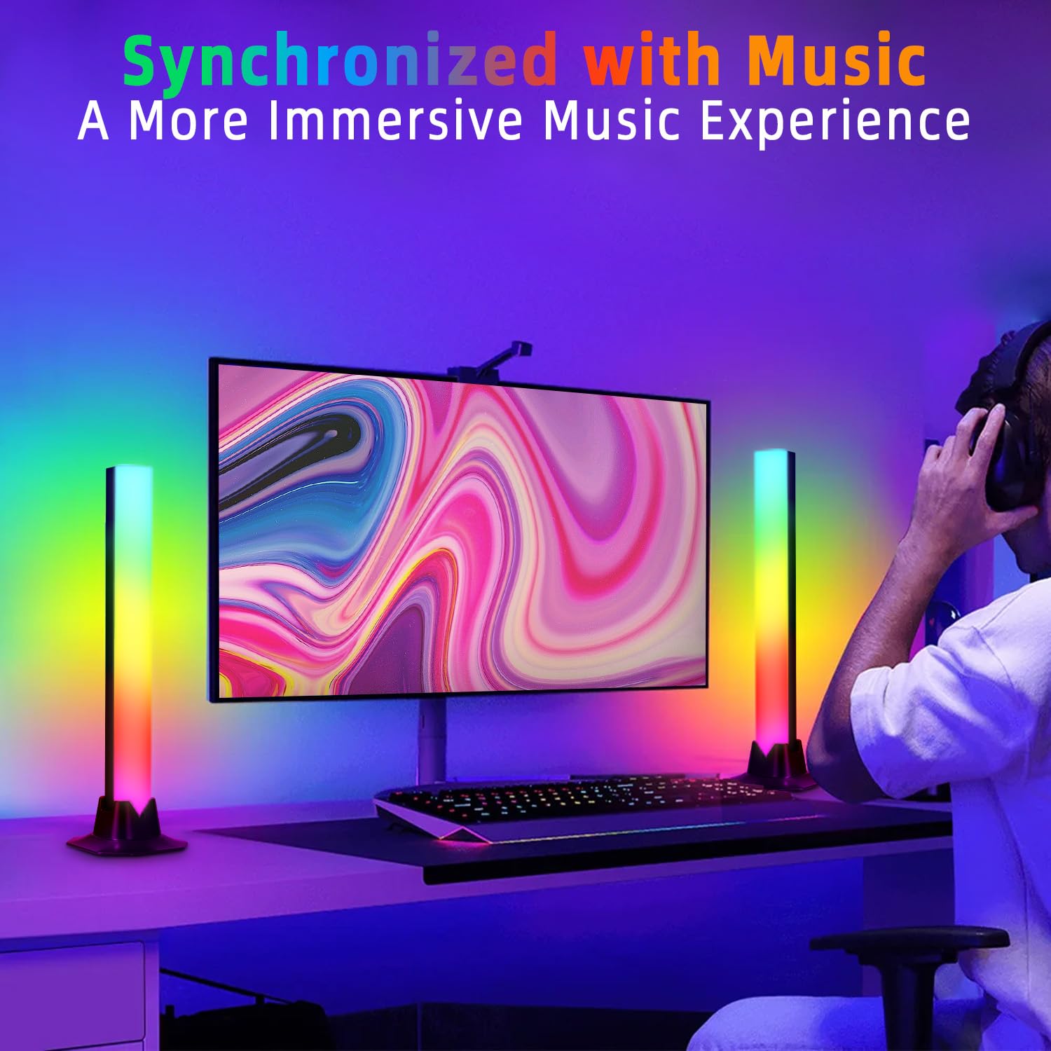 25,99 € ... Ruban LED 2M avec bande adhésive, alimentation batterie/USB, RGB, LEDs 5050, télécommande dimmable, 16 couleurs, pour rétroéclairage Ambilight TV... Bande lumineuse LED Bowfar, rétroéclairage TV RGBICWW, lampe d'ambiance TV alimentée par USB avec télécommande, synchronisation de la musique et contrôle par application, éclairage LED à intensité variable pour jeux, PC, TV, décoration de pièce La LED de jeu RGB 180° de 35 cm offre une lumière plus large et plus uniforme et crée une dimension sonore et lumineuse immersive. Auplf LED Lightbar, RGB TV Led rétro-éclairage Synchronisation Musicale Port USB, Lampe de Jeu Bluetooth Avec Application et Télécommande pour Décoration de Jeu PC Décoration D'aquarium - 2PCS Barre De Lumière Led Tv Focenat 2PCS , Rétroéclairage TV Barre, Gaming LED Smart Lampes, Sync Avec Musique TV, Control Par APP, Décor Chambre Gaming Lumière D' Ambiance Pour TV, PC, Décoration De Chambre, Bureau Barre Led Rgb Transformez vos chansons, vidéos ou jeux en spectacles de lumière amusants et amusez-vous bien lors des réunions de famille et du cinéma maison. Avec l'application, vous pouvez personnaliser exactement la lumière que vous souhaitez et contrôler les paramètres de couleur, de luminosité, de vitesse et de temps segmentés. types de contrôle : Gérez facilement votre éclairage LED via une application, une télécommande ou un boîtier de commande. Vous pouvez également monter la lumière sur le mur ou derrière l'écran du téléviseur avec les clips de support (avec dos autocollant). La bande lumineuse LED est dotée d'une paire de bases verticales (avec patins antidérapants) pour la placer verticalement. 1.Configuration facile : placer près de la télévision/console. · 2.Synchronisation audio et modes : un microphone intégré surveille la musique... Mise à niveau vers des matériaux de haute qualité : Notre barre lumineuse LED, largeur : 3,8 cm, épaisseur : 3 cm, hauteur : 35 cm, pas de points lumineux et couleurs très uniformes.
