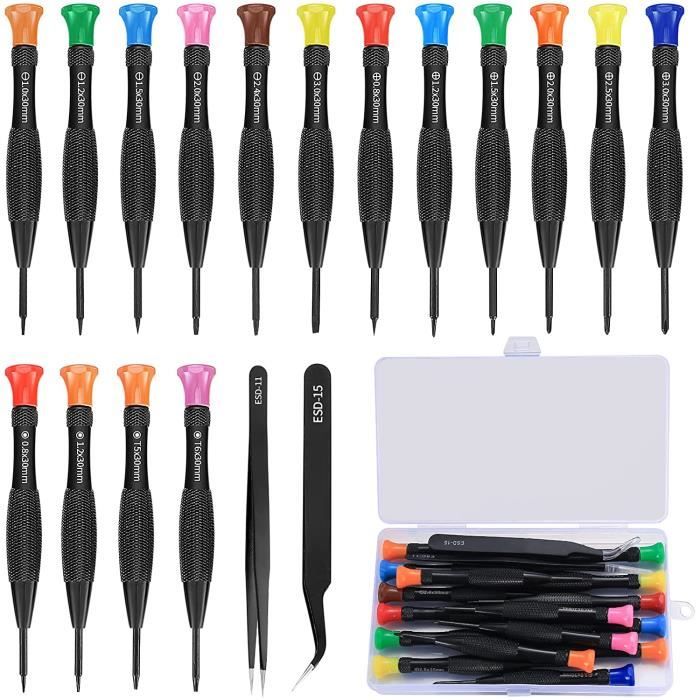 Retrouvez ci-après nos 929 offres, marques, références et promotions en stock prêtes à être livrées rapidement dans nos magasins les plus proches de chez vous 【Kit de réparation complet ASTARON pour macbook】 - Kit de tournevis 17 en 1 : comprend 10 embouts magnétiques interchangeables (T3 T4 T5 T6 T8 P2 (0,8 mm) P5 (1,5 mm) PH000 Ph00 Y00., ) et 1 * poignée de tournevis magnétique et 4 * tige auxiliaire, 1 * Brosse de nettoyage, 1 * pince à épiler -【Embouts en acier S2】 Les embouts de tournevis Torx sont conçus magnétiquement, qui peuvent aspirer les petites vis pour éviter de tomber, et sont fabriqués en acier S2 de haute qualité, après traitement thermique, ils sont plus précis que les embouts CRV en argent. Ils sont magnétiques et très solides, ne vous inquiétez pas pour les embouts tomber. JOREST Kit de réparation pour PS4 PS3 PS5 Xbox One/360, PH0 et T6 Torx T5 ASTARON Jeu De Tournevis 17 En 1 Pour MacBook, Kit D'outils De Kit Tournevis Extérieur Par exemple, T3/5/6/8 est utilisé pour Macbook Air/Pro ; Le torx T6/T8 peut être utilisé pour Xbox/PS4., P5 est utilisé pour les vis sur le panneau arrière des ordinateurs portables à écran MacBook. ⚙ 【Poignée de tournevis magnétique】 - Une seule poignée de tournevis, vous pouvez rapidement changer 10 embouts en acier S2 différents selon vos besoins, pratiques et peu encombrants, les embouts de tournevis Torx sont conçus magnétiquement pour aspirer les petites vis afin d'éviter de les faire tomber. P6 est utilisé pour la batterie du MacBook Pro 15 pouces 2009., Le T5 est utilisé pour la batterie du MacBook, la carte mère, les vis du ventilateur, etc. -Taille de l'ensemble : 21 cm * 13 cm * 1,9 cm/8,26 x 5,11 x 0,74 pouces. - 【Poignée antidérapante】 Ces poignées de tournevis Torx sont en plastique avec des matériaux TPR et PP. This 17-in-1 screwdriver set has exactly what you need for MacBooks, game consoles, and other delicate devices. Includes essential Torx bits (T3, T4, T5, T6, T8... - 【Poignée de tournevis magnétique】 Une seule poignée de tournevis, vous pouvez changer 10 forets différents, pratique et rapide, économisez de l'espace, vous pouvez rapidement changer les embouts Torx selon vos besoins.