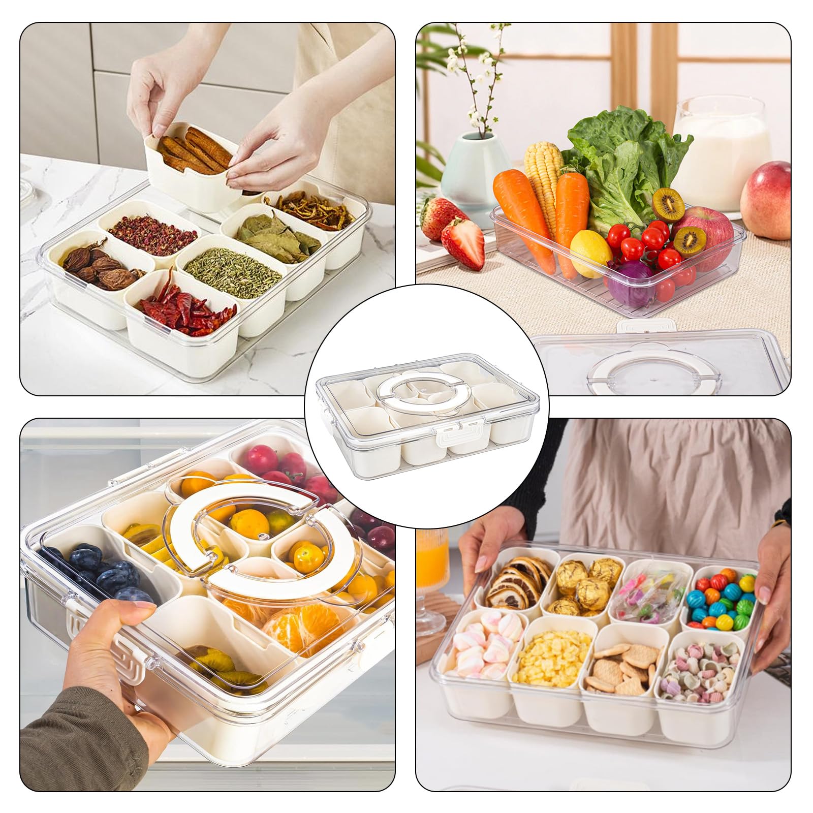 Remarque : l'article ne passe pas au lave-vaisselle ni au micro-ondes. Boîte à goûter multifonction : parfait pour diverses occasions, ce plateau de service divisé peut contenir tout, des fruits aux bonbons et aux noix, ce qui en... Plateau de service divisé en plastique avec couvercle et poignée Longueur 10,2 x largeur 10,2 x hauteur 7,9 cm., Poids : 0,9 kg., Contenu : 1 récipient Boite Compartiment Alimentaire Avec Couvercle Et Poignée Boîte à Plateau De Service Divisé Remarque : l'article ne passe pas au lave-vaisselle ni au micro-ondes. · Dimensions : 25,9 x 25,9 x 7,9 cm (L x l x H) · Portable Type de produit : plateau de service divisé avec couvercle et poignée. Dimensions : longueur 26 x largeur 26 x hauteur 8 cm.