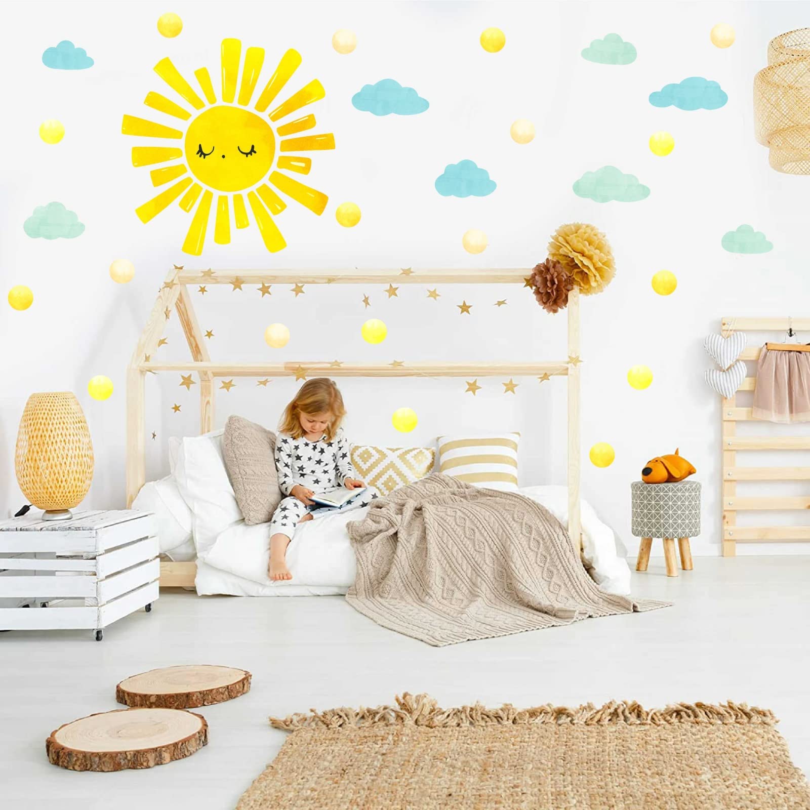 Sans colle ni résidu - idéal pour décorer une chambre d'enfant ou une location temporaire. Adapté aux chambres d'enfant, écoles, centres de loisirs et espaces médicaux. Grand sticker mural motif nuage et soleil à pois pour chambre d'enfant, chambre d'enfant, salle de jeux, salle de classe VePret Grand Soleil Décalcomie Murale, Autocollants Muraux [Version Enfants Améliorée] : Ces autocollants muraux Soleil pour enfants offrent une adhérence exceptionnelle tout en étant 100% repositionnables. [Facile à Appliquer] : Un schéma est fourni pour l'installation du décor autocollant mural. Vous pouvez décider si vous voulez utiliser les rayons du soleil ou non. 【Grand Décor Mural】 : Ce décor mural pour enfants comprend 3 bandes, mesurant environ 148 cm x 195 cm (58,4 x 76,9). Décoller uniquement le haut du décalque, le coller à l'endroit souhaité, puis appuyer sur le décalque tout en le déroulant vers le bas. Respecte les normes européennes de sécurité pour enfants. Stickers muraux - Sticker Foil - Coucher de Soleil - Palmier - Nuages... Décoration murale extérieure Tracteur - Soleil - Nuages - 80x160 cm... Une texture douce d'aquarelle associée à notre décalcomanie en papier mat emblématique donne l'impression qu'il est peint directement sur le mur au lieu d'un sticker muraux. [Décor Murale Locataire] : Technologie brevetée d'adhésif réutilisable - jusqu'à 100 repositionnements sans perte d'adhérence.