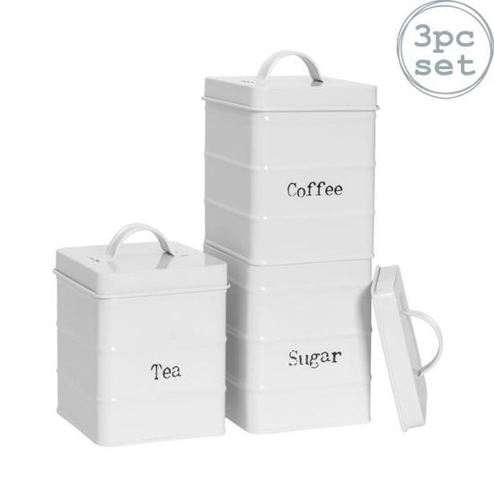 Ajoutez une cuillerée de chic industriel à votre station de thé ou de café de cuisine avec cet ensemble de boîtes de rangement de 3 pièces de Harbour Housewares. Bidon cylindrique en métal 250ml noir - Blanchet Viniti Parfait pour stocker votre sucre, café, thé, cacao, pâtes, épices et herbes. 2. Le lot de boîtes de rangement Xbopetda est fabriqué en acier de haute qualité... Couvercles hermétiques et fraîcheur : les couvercles bien ajustés créent un joint presque hermétique, garantissant que votre thé, café ou ingrédients secs restent frais et savoureux plus longtemps. Identification facile du contenu : chaque boîte comporte un texte imprimé en gras, vous permettant d'identifier facilement le contenu stocké à l'intérieur. Parfait pour organiser votre thé et plus encore, ajoutant une touche élégante et moderne à votre comptoir ou placard. Ils aident à garder votre cuisine organisée tout en ajoutant une touche de style à votre espace grâce à leur design moderne. Taille parfaite pour le stockage : ces boîtes sont compactes mais suffisamment spacieuses pour stocker une variété d'articles. Légères mais durables : fabriquées à partir d'étain robuste, ces boîtes sont légères et durables, offrant une utilisation durable. Parfait pour garder votre thé, café ou sucre à portée de main sans aucune confusion dans votre cuisine. Vintage Style Industriel · Couvercle Facile Ouvert avec Poignée Moulée · Construction Métallique Revêtue de Poudre · Le joint étanche maintient le contenu frais et... Harbour Housewares 3pc Rond Métal Thé Café Sucre Ensemble De Bidons Noir Ancien Cuisine Boite De Rangement Caddie Recipient Dimensions : Diamètre : 10 cm, Hauteur : 11,5 cm, ce qui les rend parfaits pour votre thé ou autres essentiels de cuisine.