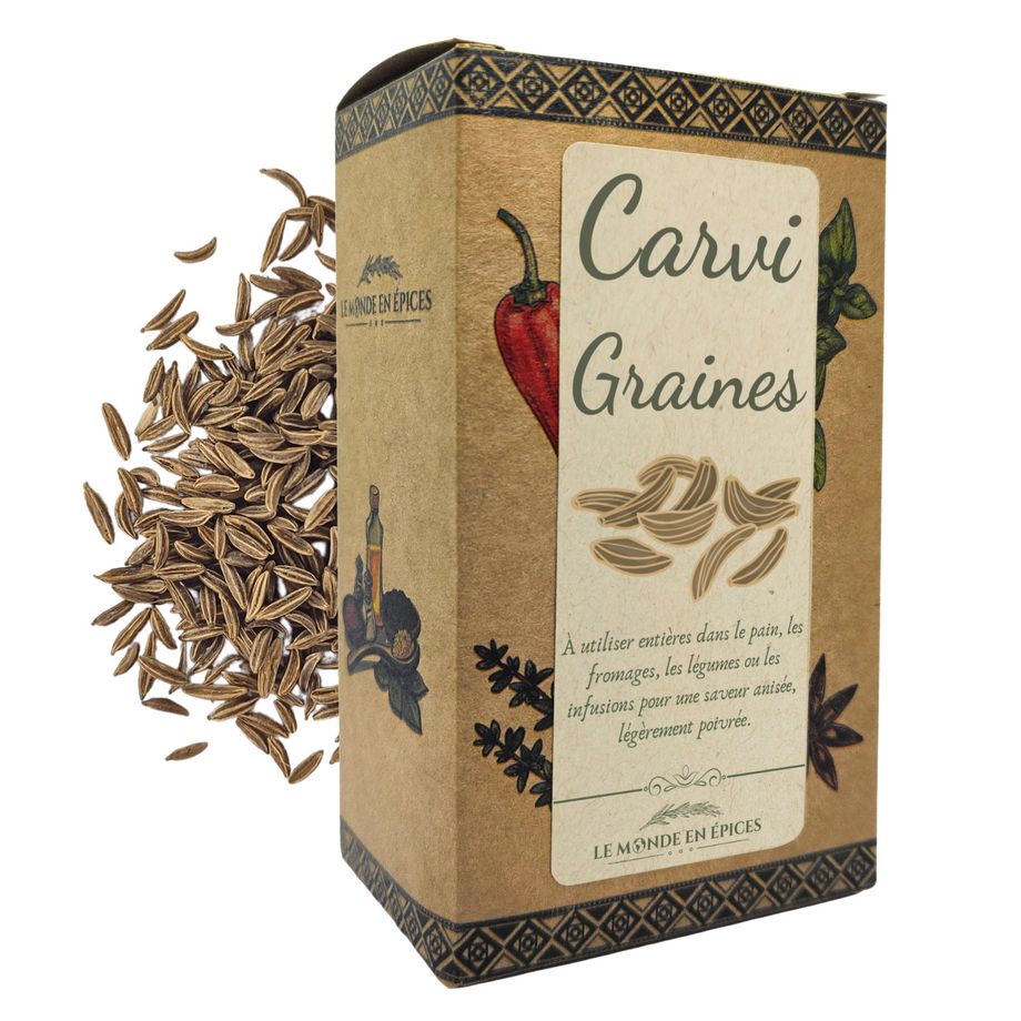 Au menu : des ingrédients naturels sans arômes ni colorants ajoutés. Rien d’étonnant donc à ce que les chefs du monde entier fassent la part belle à cette épice. En clair, les saveurs uniques de nos herbes et épices parlent d’elles-mêmes. Nos partenaires, notre mission, notre fierté Nos Herbe Si nous pouvons être fiers de notre gamme d’herbes et épices, c’est grâce à nos partenaires. Des saveurs incroyablement puissantes Des saveurs incroyablement puissantes Mais le terroir ne fait pas tout. Leur goût chaud et riche rappelle la réglisse et l’aneth. Cumin des prés ou Carum carvi BIO - Graines d'aromatiques Du délicat parfum du thym français aux subtiles notes d’agrumes de la citronnelle du Vietnam, en passant par les doux arômes de l’aneth biologique, chacune vient rehausser et même transformer vos mets. Chacun de nos produits est en effet l’aboutissement du travail acharné de plusieurs générations de producteurs. Carvi Bio Graines Épice - Graines Entières Cumin Des Prés - Carum Carvi L 100g 5060863821964 Graines De Carvi Acheter Nous savons que ces ingrédients sont avant tout une affaire de goût. Pour Valley of Tea, la qualité d’un produit et sa teneur en nutriments (et donc ses bienfaits) sont intimement liées. Pour décrire nos herbes biologiques artisanales, une seule phrase vaut mieux qu’un long discours : Nos herbes et épices vous aident à concocter de véritables délices., Tout est dit ! C’est pourquoi nous avons parcouru la planète à la recherche de producteurs respectueux des traditions et spécialistes de leur terroir. Les amoureux du pain de seigle connaissent bien le carvi. Nous vous fournissons des informations détaillées sur la culture, les techniques de production et l’utilisation en cuisine de chacune de nos herbes et épices. Notre carvi s’utilise en infusion apaisante ou comme ingrédient pour relever vos plats favoris. Des versants du mont Olympe en Grèce aux riches terres noires de Ceylan, ils sont le fruit du savoir-faire d’artisans du monde entier. C’est notre façon de vous faire partager notre fierté., Alors, à vos cuisines ! Carvi : une épice à redécouvrir L'identité du carvi : Le carvi, nom latin Carum carvi, fait partie de la famille des Apiaceae. Connu également comme le cumin des prés ou graine de carvi, il prend racine dans les prairies et pâturages de montagne jusqu'à une altitude de 2200 m. Ses feuilles finement découpées et sa tige cylindrique parcourue de fins sillons sont emblématiques Ce sont surtout les graines du carvi qui sont utilisées (tout comme le cumin). Il est très employé dans l'est de la France et en Allemagne et on l'appréciera tout particulièrement avec un bon munster. Contrairement au cumin qui est produit en grande quantité en Inde et en Turquie (mais aussi de façon plus intimiste au Maroc et principalement dans la région d'Alnif), le carvi est... C’est pourquoi nous nous efforçons de faire appel à des producteurs respectueux des méthodes ancestrales. Vous ne salivez pas encore ? Et si nous vous décrivions les saveurs riches et puissantes que ces herbes spécialement sélectionnées confèreront à chacun de vos plats ? Imaginez toute la richesse de l’origan d’Italie qui infuse votre ragoût de délicieux parfums.