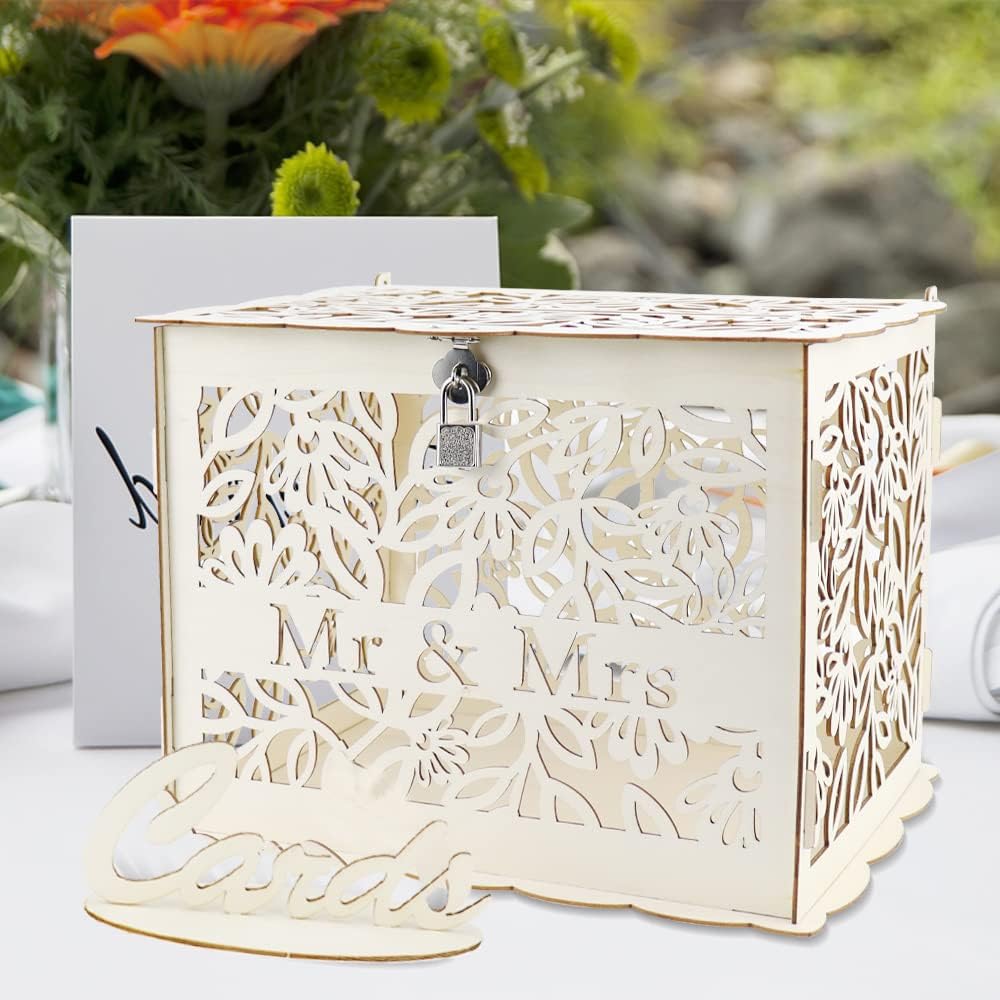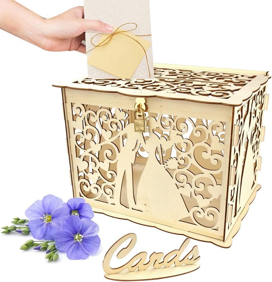 Cette boîte à cartes permet à vos invités de déposer des cartes et des notes de vœux. Satisfaction : nous promettons à chaque client une satisfaction d'achat, n'hésitez pas à nous contacter pour toute question concernant votre achat. Et, la boîte à cartes de mariage unique avec serrure est un excellent ajout à votre décoration de mariage. En bois solide, avec une serrure et une fente pour glisser les cartes de vœux ou les petits cadeaux. Le style est vintage et rustique, ça ajoute une touche... Conçue pour ajouter une touche d'élégance à votre mariage, cette magnifique boîte offre aux invités un endroit élégant et sûr pour déposer leurs cartes et leurs souhaits. Boîte à cartes de mariage unique avec serrure est un excellent ajout à votre décoration de mariage. Artisanat délicat et impressionnant, généreux mais pas simple. Boite Cadeau Mariage Boite Carte Cadeau Boîte à Cartes De Mariage En Bois Vintage Avec Serrure Cœur - 27.5x19.5x28cm Organisateur Mariage Urne Pour Mariage Caractéristiques : vintage, idéal pour les mariages rustiques. Parallèlement, cette tirelire de mariage est un excellent moyen de recueillir les vœux et les cadeaux en argent de la famille et des amis THATSRAD Boîte à Carte de ariage en Bois 24,8 x 19,8 x 18,7 c avec [HAUTE QUALITÉ]Fabriquée en contreplaqué de première qualité et durable, cette boîte à cartes de mariage est faite pour durer. Caractéristiques : Matériau : bois. [CADEAU UNIQUE]Ce coffret de cartes de mariage est un cadeau unique et attentionné pour les jeunes mariés ou les couples qui célèbrent leurs fiançailles. Parfait pour un mariage, une fête nuptiale ou un anniversaire, c'est une façon significative de commémorer leur histoire d'amour. Et, la boîte à cartes en bois est délicate, impressionnante, généreuse mais pas simple. CONCEPTION RÉFLÉCHIE]:Célébrez l Contenu : 1 boîte à cartes., 1 clé., 12 caoutchoucs. Facile à installer, boîte à cartes uniquement, les autres accessoires figurant sur l'image ne sont pas inclus. Large : la boîte aux lettres pour cadeaux de mariage est idéale pour les mariages, les anniversaires, les débuts, les cérémonies de don, les fêtes prénuptiales ou les fêtes prénatales, les 21e anniversaires, le thème des fêtes, peut également décorer le thème de la forêt tropicale, et plus encore.