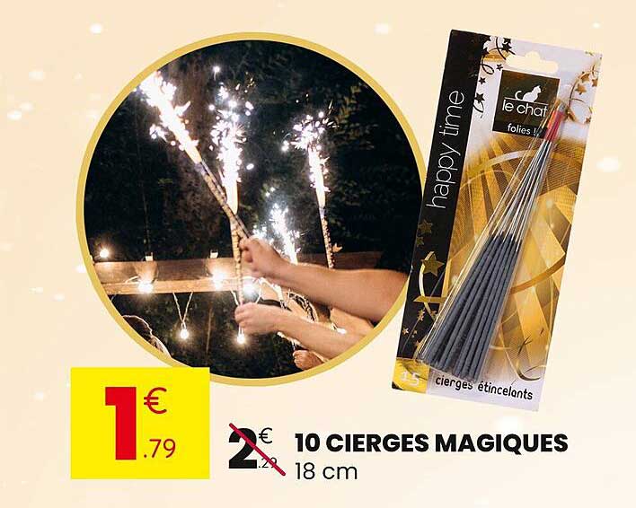 20 cierges à étincelles de 18 cm., Durée: 35 secondes durée 35 secondes environ CIERGES MAGIQUES OR (18CM) | Joyeuses Fées • Le partenaire de vos fêtes et cérémonies Bougie Scintillante Cierges Magiques Mariage - Feux De Bengale Pour Un Mariage Magique Cierge Magique Gifi Nos cierges magiques pour mariage pour une Fête pleine de Lumière et de Joie. Ce lot est composé de deux sachets contenant chacun 10 cierges magiques de 18 cm soit 20 cierges au total. Ils sont sur une tige en fer et se mettent à... Longueur (cm) : 18,0 Durée de combustion : env. 40 secondes Catégorie : Feux d'artifice de catégorie 1 (peut être utilisé toute l'année et remis à des personnes de plus de 12 ans) Veuillez respecter les consignes de sécurité figurant sur l'emballage ! Utilisez les cierges magiques pour mettre en scène une présentation particulière