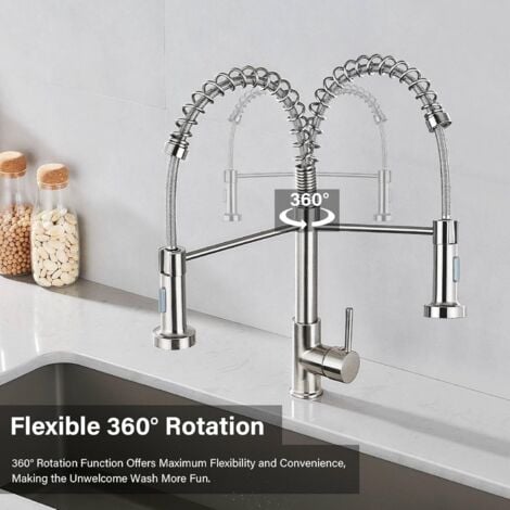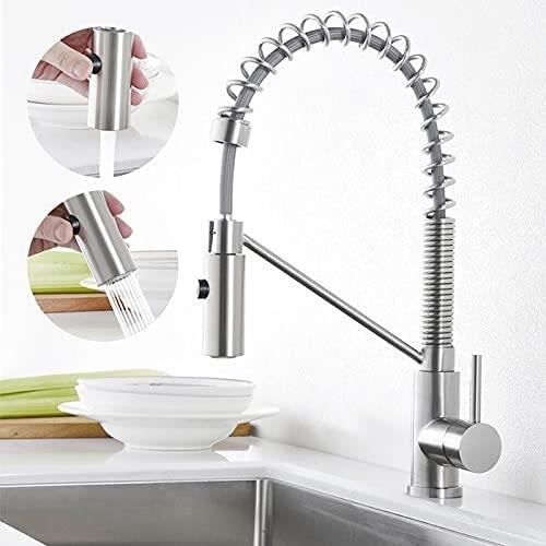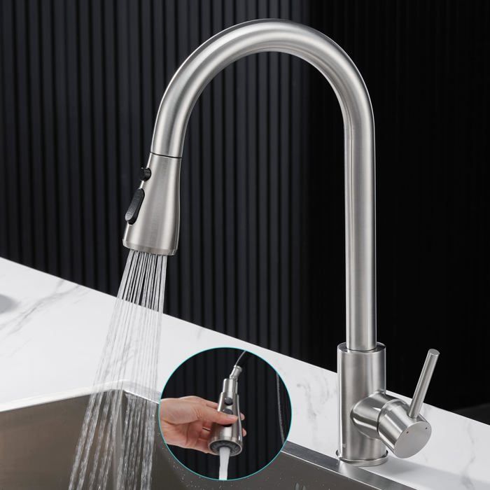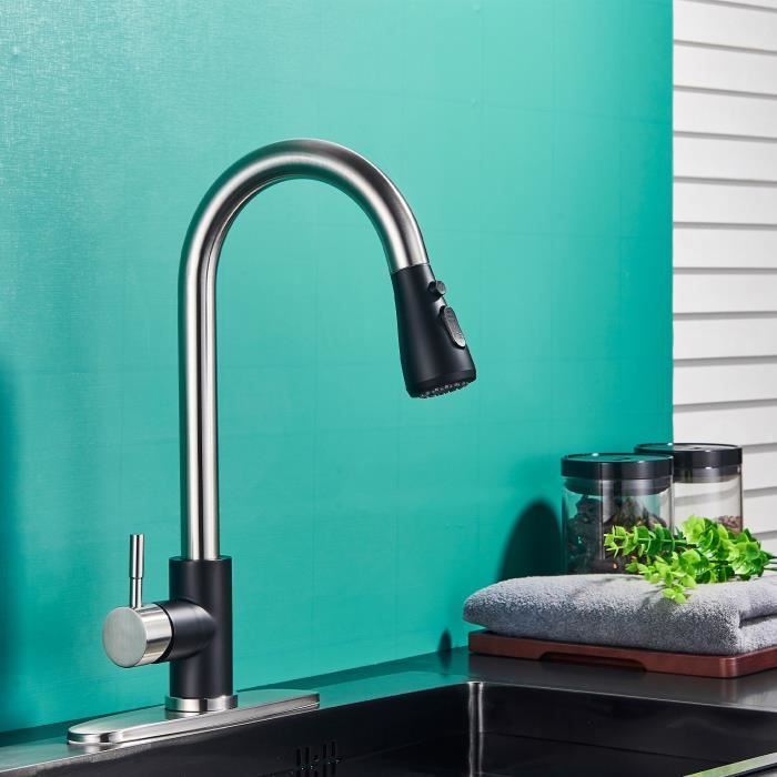 La rotation à 360 ° permet de nettoyer n'importe quelle partie de l'évier. Conçu avec un pulvérisateur à levier unique, vous pouvez soulever la tête de pulvérisation du support avec facilité, il est facile de le ranger après utilisation Bec rotatif à 360 ° en forme de L, poignée latérale en métal, douche rétractable, rend votre cuisine encore plus attrayante. 【Excellentes propriétés】 : mitigeur cuisine livré avec 2 têtes de fonction (mode flux et mode pulvérisation). Robinet Cuisine Avec 2 Jets Robinetterie à Ressort Cuisine Extensible Pivotant A 360 Robinets Devier De Cuisine Or 87790364 Suguword Avis Robinet Cuisine Blanc Mitigeur Cuisine Avec Douchette Extractible Suguword En Ligne Le tuyau de raccordement rapide vous aide à l'installer vous-même, bricolage en seulement 15 minutes, pas besoin de plombier, ce qui fait de vous un héros à domicile. Si vous avez des questions sur le robinet de cuisine, n'hésitez pas à nous contacter. 【Après-vente et service】: robinet de cuisine extensible bénéficie d'un retour sans raison de 30 jours, assurance qualité de 20 ans, politique de remplacement gratuite, soyez assuré d'acheter. 【Facile à installer】: Le paquet de robinet d'évier de cuisine contient tous les accessoires nécessaires à l'installation., ., La taille d'installation est généralement de 3/8 pouces, installation à trou unique, trou d'installation : Ø 35-38 mm. Vous pouvez facilement basculer le type de pulvérisation entre le pommeau de douche et la tête de pulvérisation d'eau via le bouton de la douche. Suguword robinet de cuisine noir ; 4,4 / 5. 246 avis. Matière : Acrylique, Inox. Type de bec : Douchette, Pivotant, Rétractable ; 3 / 5. 1 avis. Couleur(s) : noir... 【 Sécurité et santé 】 : le robinet de cuisine avec douchette extensible est fabriqué en acier inoxydable SUS 304 respectueux de l'environnement, résistant à la corrosion et à la rouille.
