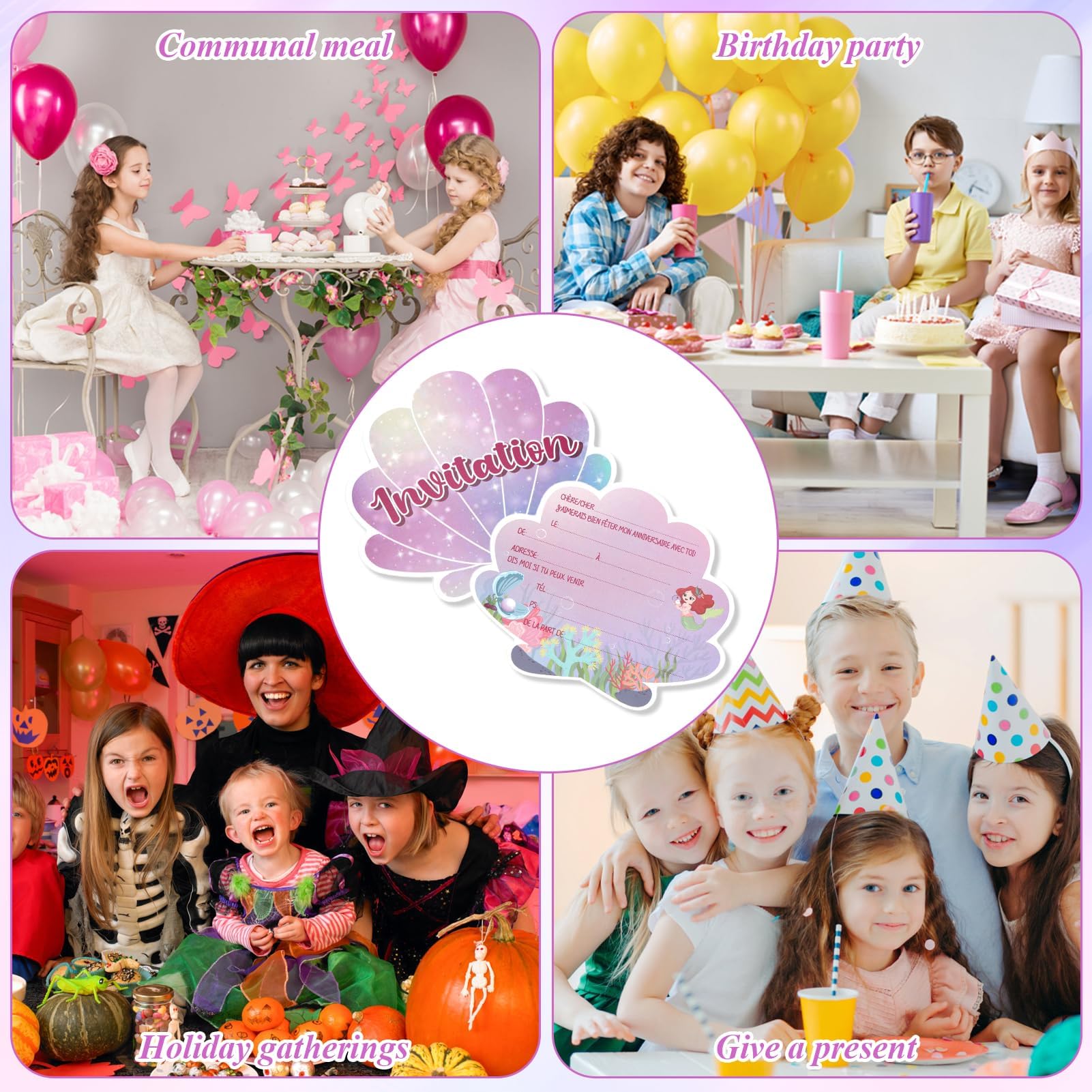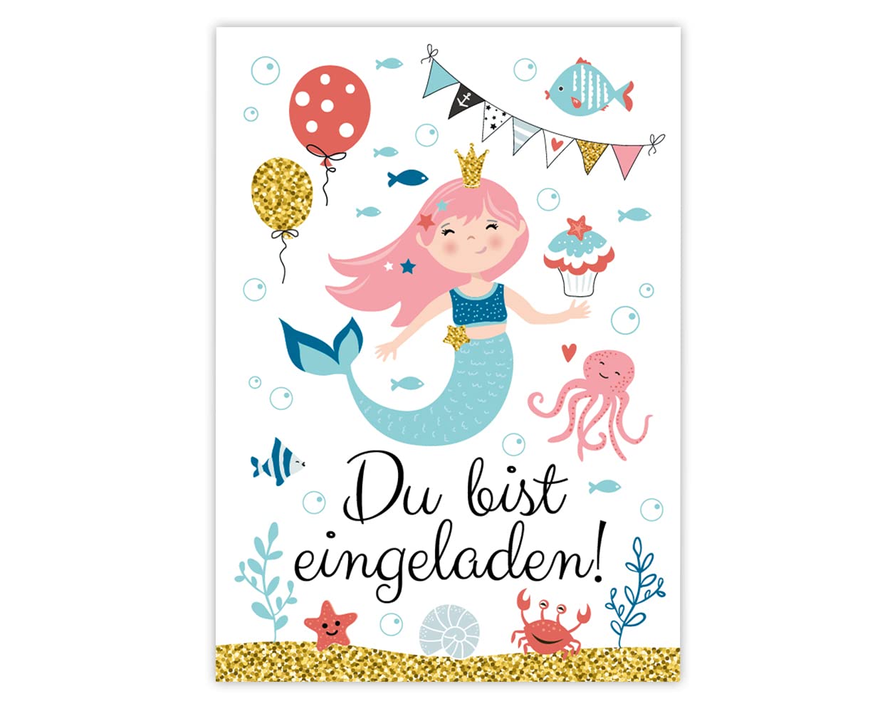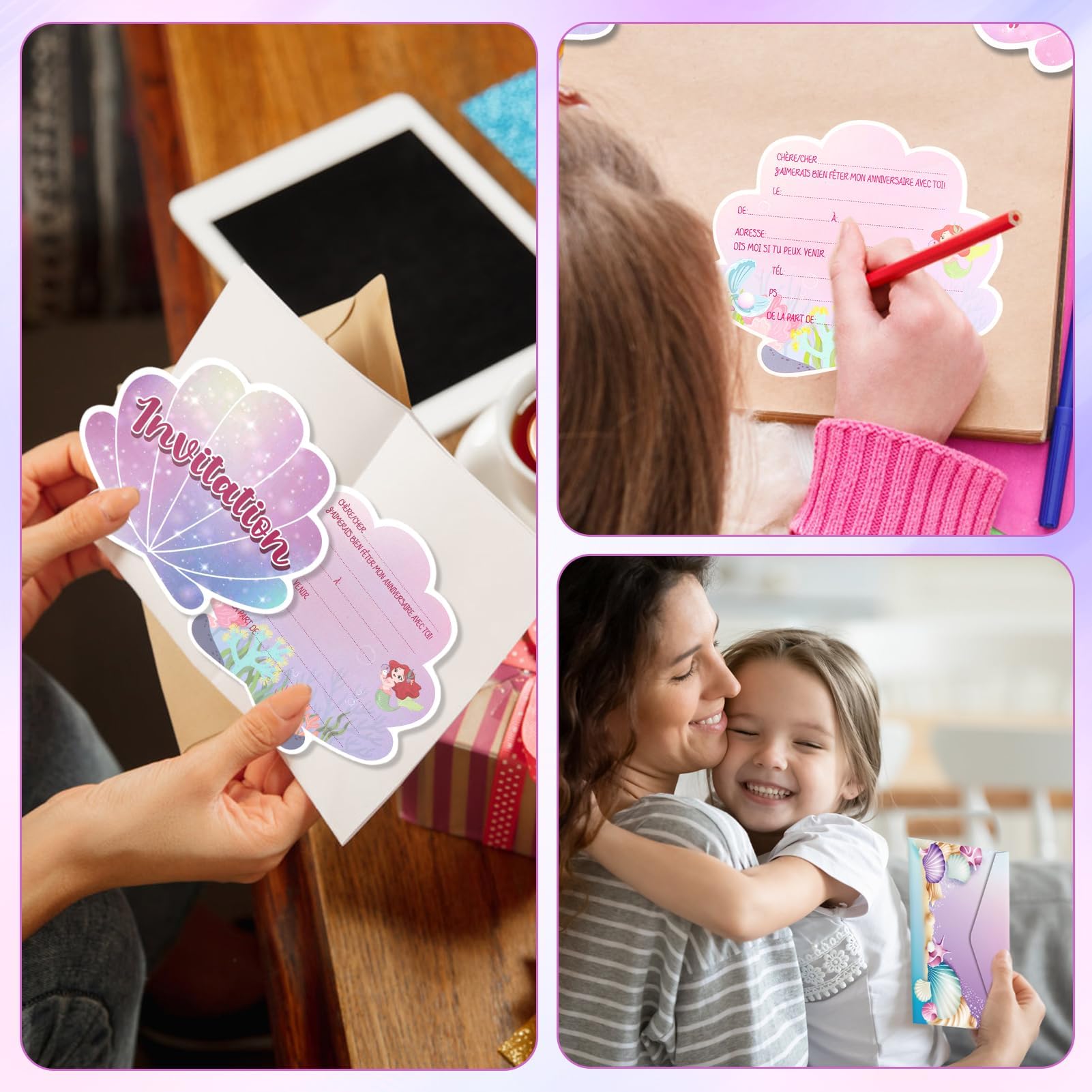 Contenu : 12 cartes d'invitation + 12 enveloppes + 12 sachets de fête / nature + 12 autocollants Occasion : le kit de fête est très bien adapté pour une fête d'anniversaire ou une fête d'anniversaire. Vous pouvez également utiliser ces cartes comme invitations à un baptême, une soirée pyjama, une fête à thème, une fête au cinéma ou à la piscine. Fabriquées en Allemagne : les cartes, enveloppes, sacs et autocollants ont été fabriqués en Allemagne. ou écrire le nom de l'invité. Lot De 12 Cartes D'invitation D'anniversaire à Paillettes Les cartes d'invitation sont très stables, ont un format A6 (10,50 cm x 14,80 cm), une impression photo de qualité supérieure de 300 g/m² et sont revêtues d'un vernis UV pour la finition. Les sachets de fête (sachets à fond croisé) sont très bien adaptés pour emballer de petits cadeaux ou des bonbons pour les invités. Sacs cadeaux : les sacs en papier ont une taille de 14 x 22 x 5 cm. Cartes d'invitation sirène : le lot contient 12 cartes d'invitation sirène 12 enveloppes 12 autocollants ronds. Matériau de qualité supérieure : la carte d'anniversaire pour enfants est fabriquée en papier respectueux de l'environnement de qualité supérieure et est fabriquée par une technologie d'impression spéciale