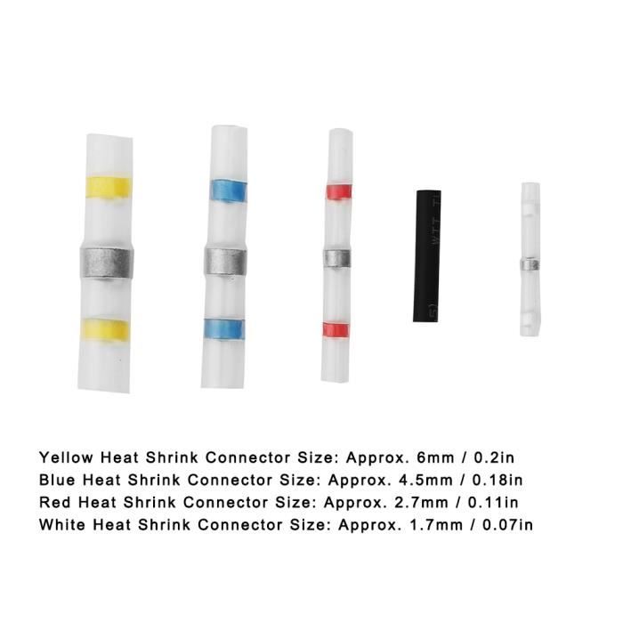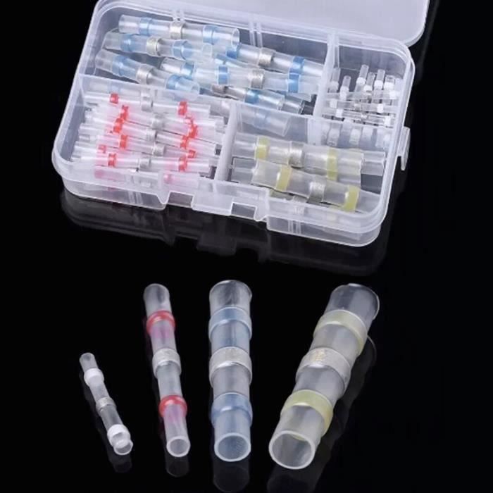 en le chauffant avec un souffleur à air chaud, l’étain soude et relie les extrémités des conducteurs à l’intérieur de ces connecteurs isolants excellente résistance à la traction et à la dilatation en le chauffant avec un souffleur à air chaud, l’étain soude et relie les extrémités des conducteurs à l’intérieur de ces connecteurs isolants | excellente résistance à la traction et à la dilatation BGS 85221 4048769061661 - ance outil online soudure et rétrécissement simultanés par chauffage Classe de protection : IP67 MANCHON DE SOUDURE manchons thermorétractables 100 pièces connecteurs - EUR 6,97.À VENDRE! 355482795459 12 connecteurs de soudure bleus, diamètre intérieur 6,0 mm, diamètre extérieur 7,0 mm, longueur 38 mm Contenu de la livraison : 18 connecteurs de soudure rouges, diamètre intérieur 5,0 mm, diamètre extérieur 6,0 mm, longueur 38 mm Plage de températures : -55 à +125 °C Contenu de la livraison : 18 connecteurs de soudure rouges, diamètre intérieur 5,0 mm, diamètre extérieur 6,0 mm, longueur 38 mm | 12 connecteurs de soudure bleus, diamètre intérieur 6,0 mm, diamètre extérieur 7,0 mm, longueur 38 mm | 6 connecteurs de soudure jaunes, diamètre intérieur 7,0 mm, diamètre extérieur 8,0 mm, longueur 42 mm Cosse Thermoretractable BGS Technic | Assortiments De Connecteurs De Soudure Et Gaine Thermorétractable | 36 Pièces | Purchase Online Gaine Retractable Pour Fil Electrique L'assortiment de connecteurs à souder BGS technic (36 pièces) avec gaine thermorétractable est idéal pour les applications exigeantes dans l'automobile... dans un pratique boîtier d’assortiment