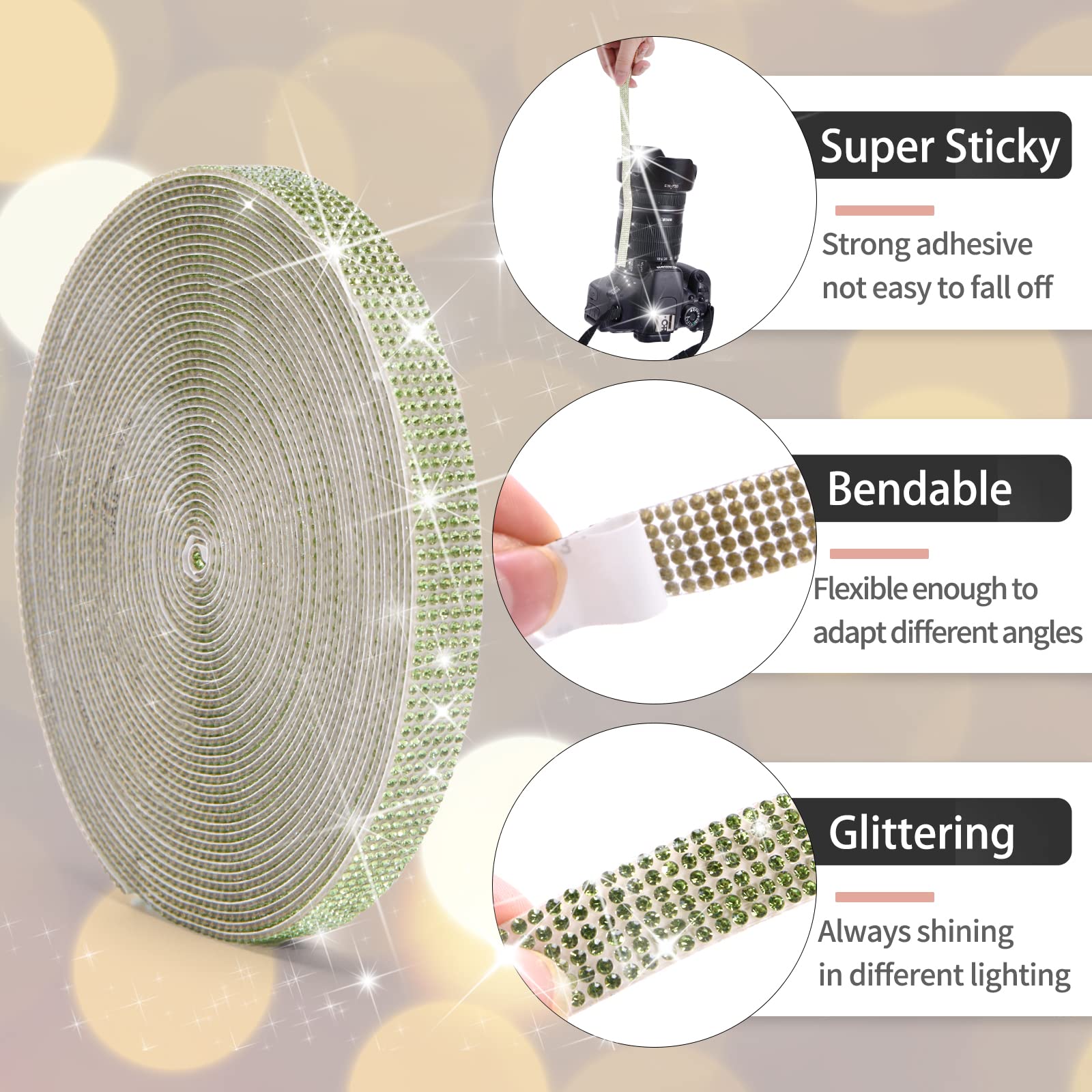 Ruban de strass de qualité supérieure et forte adhérence : fabriqué en strass de verre de haute qualité, le dos autocollant assure une forte adhérence, reste fermement sur n'importe quelle surface lisse sans tomber, avec la technologie thermofusible à haute température pour un éclat durable et durable. Ruban autocollant en strass en cristal - 1,3 cm x 9 m - 6 rangées Ils sont parfaits pour améliorer les œuvres d'art, les vêtements, les accessoires et les décorations d'intérieur avec une brillance élégante. Rouleau De Ruban Autocollant En Résine Avec Strass - Décoration - Noir Plusieurs tailles et options de couleurs : disponible en plusieurs largeurs (0,9 cm, 2 cm, 2,9 cm), couleurs (argent, AB, rouge, noir, bleu royal, rose, violet, arc-en-ciel, etc. Ruban de strass autocollant en cristal de 9,9 m pour loisirs créatifs, décoration (Jelly Orange AB, 4 rangées, 8 mm) · 4 Rows - 8mm. $18.30$18.30. In Stock · 6... ), et longueurs (2,7 m, 6 m, 9 m par rouleau) pour s'adapter à différents projets, et pour divers besoins décoratifs. Large gamme d'applications : idéal pour les mariages, les fêtes, les vacances (Noël, Halloween), les cadeaux et la décoration quotidienne. Ruban diamant à effet pailleté éblouissant de 9 m : les strass scintillants brillent magnifiquement sous la lumière, ajoutant un effet 3D glamour aux travaux manuels et à la décoration.