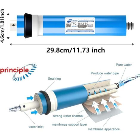 Pour une variété d'appareils d'eau pure domestique, hospitalière, de laboratoire et autres petits systèmes. La membrane à une température de 25 ℃, la pression de l'eau était inférieure à 5,5 kg, 1 jour (24 heures) a produit 75 gallons d'eau (1 gallon US = 3,785 litres). Matériau : la membrane est un matériau composite Ajustement universel : conçue pour s'adapter aux boîtiers à membrane RO de style résidentiel standard 1812-75GPD avec un diamètre interne de 2 pouces, notre membrane est compatible avec la plupart des systèmes de filtration d'eau par osmose inverse Description : Membrane composite circulaire ULP1812-75G. 28,4 * 3,9 cm/11,18 * 1,54 pouces Poids : env. Quel est le taux de rejet du sel d'un élément de membrane d'osmose inversé domestique? Formule du cercle : plaie ronde Éléments membranaires de la série ULP appliqués à une teneur en sel d'environ 2 000 ppm sous l'eau de surface, les eaux souterraines, l'eau du robinet et d'autres traitements de dessalement de l'eau Formule circulaire : à plaie ronde Matériau : la membrane est un matériau composite Couleur principale : Bleu Taille : env. Membranes industrielles d'osmose inverse - Canature Watergroup Wytino Membrane Osmose Universel Membrane D'Osmose Inverse ÉLéMent De Membrane De Filtre à Eau D'éLéMent D'Osmose Inverse ULP1812-75GPD Pour La Maison Industrie de la peinture (concentration et récupération des colorants)… Avantages Les membranes d'osmose inverse que nous proposons disposent des agréments requis (certification NSF-58 et/ou NSF-61) et offrent : Faible passage de sel, généralement> 99,7% de rejet dans des conditions standard dans l'eau saumâtre. Productivité à... La membrane est un matériau composite.