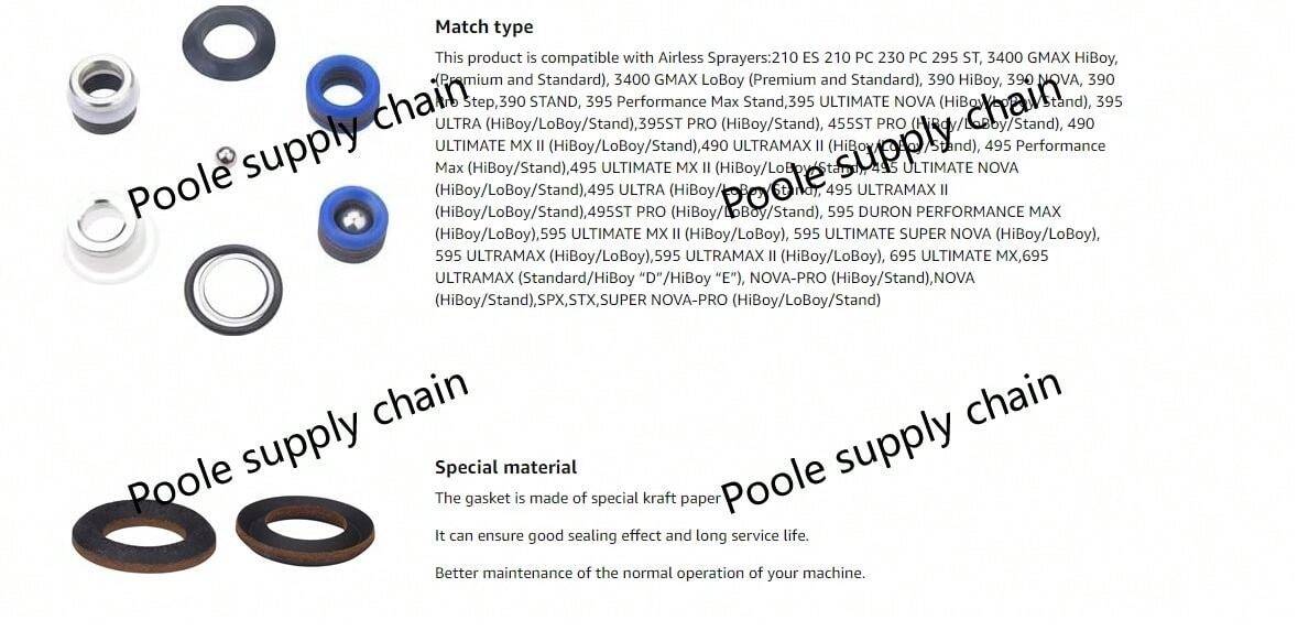 [Convient pour] : l'équipement de pulvérisation sans air peut être utilisé pour la peinture, la peinture au latex, la pulvérisation de peinture colorée pour carrelage, la peinture anti-corrosion, la peinture époxy riche en zinc, la pulvérisation de peinture en pierre véritable, le mastic en poudre, le mastic, l'ingénierie de croisement de route, la peinture ignifuge, la rénovation et plus encore Description du produit Kit de réparation de pompe de rechange de haute qualité 244194. Convient pour : Ultra Max II 390 395 490 495 595 LineLazer 3400. Cette pièce peut être un kit de réparation de pompe de rechange pour Ultra 390 395 490 495 595 FinishPro 390 395. be a replacement pump repair Kit pour pulvérisateur de peinture sans air 390 395 490 495 595 Matériau 244194 Kit D'Emballage de Réparation de Pompe Il est livré avec tous les joints pour réussir à reconstruire votre pulvérisateur. Kit De Réparation De Pompe 244194 Pour Pistolet Pulvérisateur De Tous les cuirs et pièces usinées sont fabriqués avec des matériaux de la plus haute qualité, fabriqués en acier inoxydable et silicone de haute qualité... [Compatible avec ] : Graco 390 395 490 495 595 Pulvérisateur de peinture [Compatible avec ] : FinishPro 390/395 Ultra 395/495/595 Ultra Max II 490/495/595 Ultra Max 695 ST PRO STX 295ST Ultimate Nova 395 Ultimate SuperNOVA 395 Ultimate VA 495Ultimate MX 695 Nova 390 GMAX 3400 LineLazer 3400 [Contenu de l'emballage] : 1 kit de réparation de pompe de pulvérisation sans air 244194 [Convient pour] : l'équipement de pulvérisation sans air peut être utilisé pour la peinture, la peinture latex, la peinture de carrelage couleur, la peinture anti-corrosion, la peinture époxy zinc, la pulvérisation de peinture en pierre véritable, grand mastic en poudre, Mastic, Road Cross. [Compatible avec ] : 244194 Kit de réparation de pompe pour pulvérisateur sans air Graco 295 390 395 490 495 595 3400