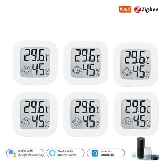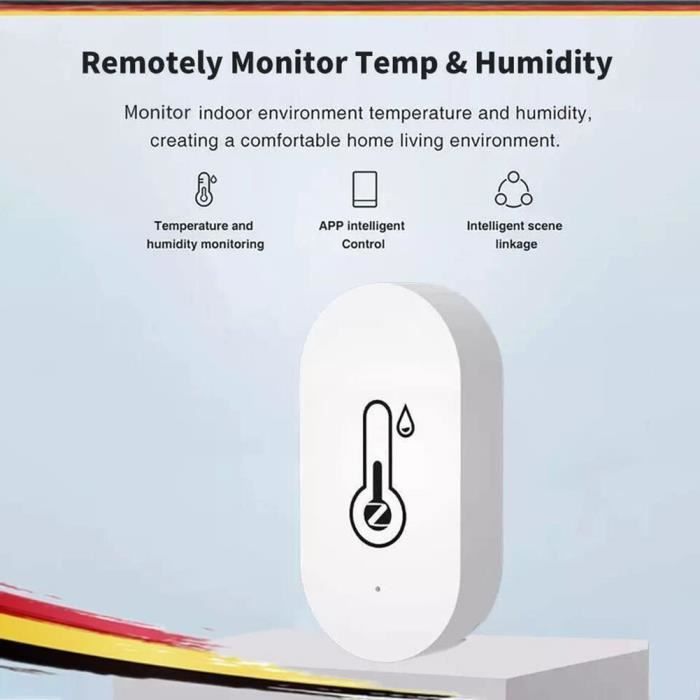 Contenu : 1 thermomètre Zigbee Thermomètre intelligent Tuya Zigbee, capteur de te... - Grandado Capteur de température et d'humidité sans fil - Surveillez facilement votre maison » : ce capteur de température et d'humidité Zigbee vous permet de suivre facilement les niveaux de température et d'humidité dans votre maison. Pas besoin de câbles, il suffit de le connecter à votre hub domotique compatible Zigbee et de recevoir des mises à jour en temps réel sur votre téléphone... Léger et portable : il s'agit d'un petit thermomètre et hygromètre portable et intelligent avec une petite taille, un poids léger et sans espace. Vous pouvez afficher les mesures actuelles de l'hygromètre et du thermomètre sur l'écran LCD, ou via l'application pour obtenir des informations Détection intelligente : la plage de détection de température de ce capteur intelligent ZigBee de température et d'humidité : -20 ℃ ~ 80 ℃, humidité de fonctionnement : 0 % ~ 100 %, lorsque la température et l'humidité dépassent la plage prédéfinie, vous recevrez immédiatement une notification d'alerte de votre téléphone mobile, prend en charge l'application iOS et Android La plage de détection de l'intensité lumineuse est de 0 lux ~ 157000 lux, ce qui vous permet de mieux comprendre la température, l'humidité et la luminosité La taille et les grands chiffres le rendent facile à lire et facile à placer, tels que les chambres de bébé, les serres, les caves à vin, les incubateurs, etc. Détection d'intensité : ce n'est pas seulement un capteur intelligent de température et d'humidité. Il prend en charge la connexion WiFi 2,4 GHz et peut surveiller à distance la température et l'humidité., Informations Grâce à Tuya Smart, le thermomètre et l'hygromètre peuvent être reliés à d'autres appareils connectés de la maison pour allumer et éteindre automatiquement les appareils et maintenir un confort intérieur optimal.🏠Fonction d'alarme : signalez automatiquement au téléphone portable en ligne lorsque la température est trop élevée... Sensor Humidité Wifi Tuya Tuya Zigbee Capteur De Température Et D'humidité Sans Fil Intelligent Avec Application D'alerte, Thermomètre Hygromètre D'intérieur Alimenté Par USB/batterie Pour La Maison, Le Bureau Capteur Humidité Tuya Peut être utilisé à l'intérieur et à l'extérieur